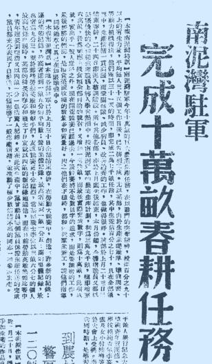 经过连续几年的生产运动,三五九旅的各项经济活动都取得了显著的成绩农业达到了“耕二余一”要求,每人一猪一人一羊、十人一牛、不仅自给有余,还向边区政府上缴大批粮油。南泥湾还开办了各种工厂和作坊,大力发展纺织、缝纫、造纸、肥皂等;开办商店、供销合作社,组织骡马运输队,搞活了流通,保证了边区军民日用品的供给,缓解了根据地财政经济困难。从此,南泥湾变成了闻名遐迩的“塞北江南”。