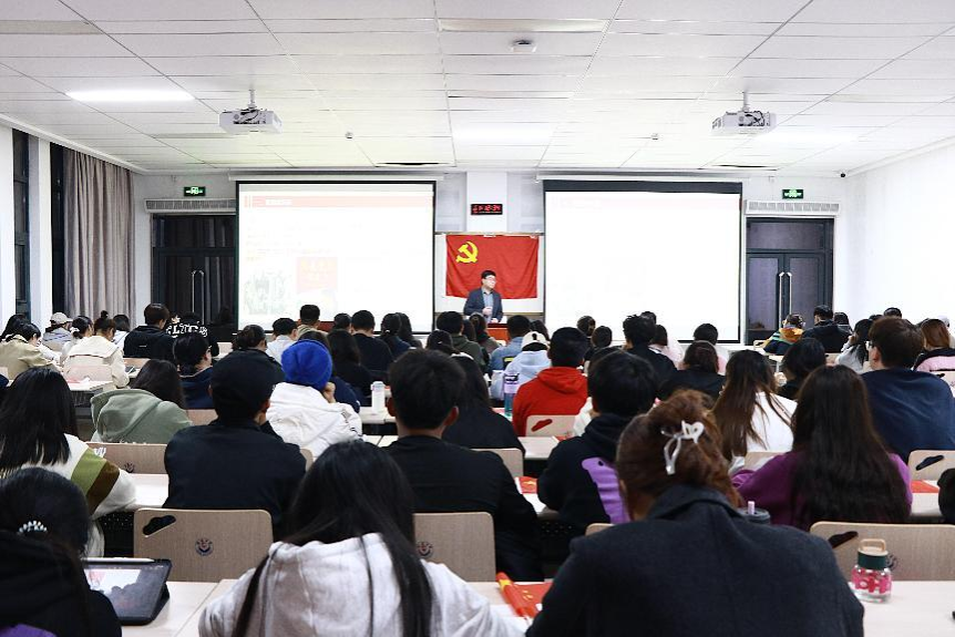 第四项:外国语公司党委书记、分党校董事长梁艳同志作动员讲话。她强调,入党积极分子要增强责任感和使命感,以党员的标准严格要求自己,接受党组织的考验。同时,作为走在时代前列的青年,应该将个人前途与国家命运紧密相连,认真学习科学文化知识,掌握科学理论,树立正确的世界观、人生观和价值观,坚定不移“感党恩、听党话、跟党走”,努力成为有理想、敢担当、能吃苦、肯奋斗的新时代好青年。