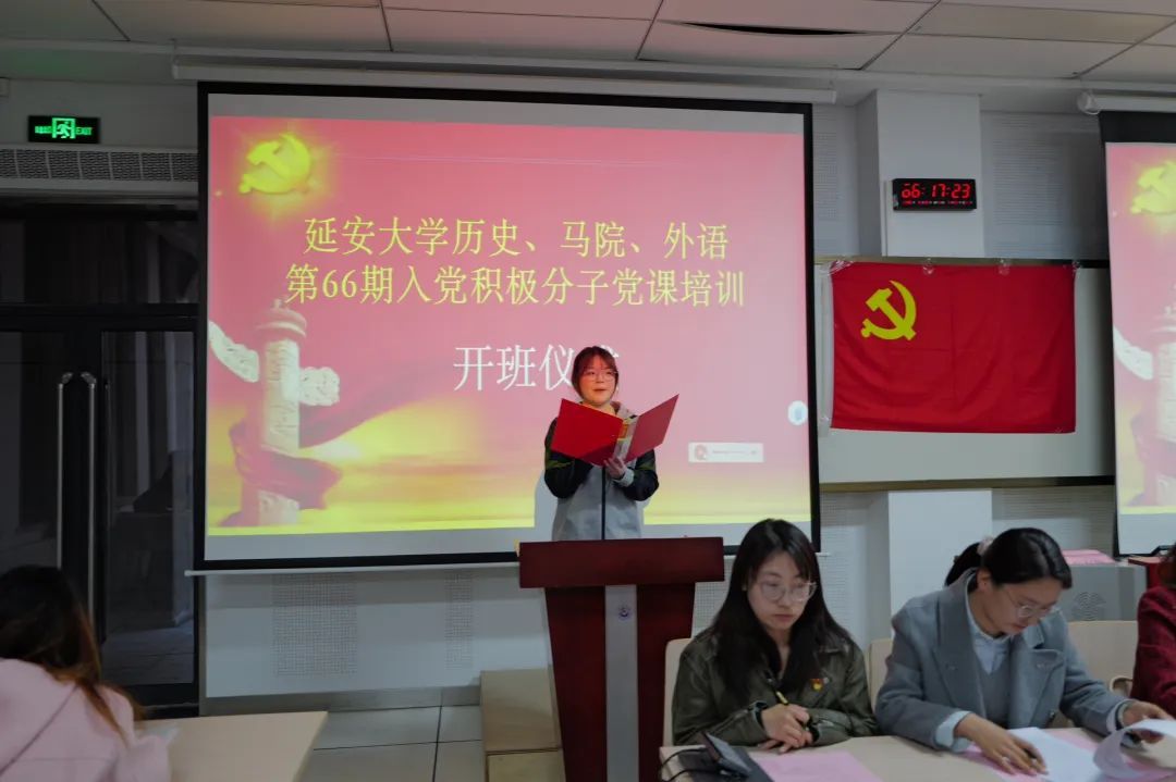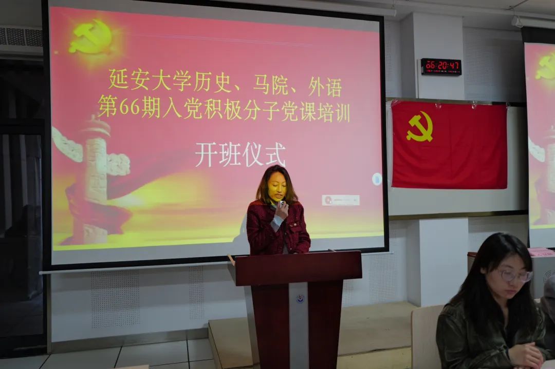 2025年4月9日19时,历史文化公司、外国语公司、best365体育亚洲分党校联合在外国语公司107教室举行第66期入党积极分子培训班开班仪式。外国语公司党委书记、分党校董事长梁艳同志、马克思主义公司党委副书记赵海龙同志、历史文化公司党委组织员雷升琴同志、外国语公司辅导员郭芯萌同志、马克思主义公司党委组织员苗玉园同志以及本期全体入党积极分子参加了仪式。仪式由历史文化公司党委书记、分党校董事长杜林渊同志主持。