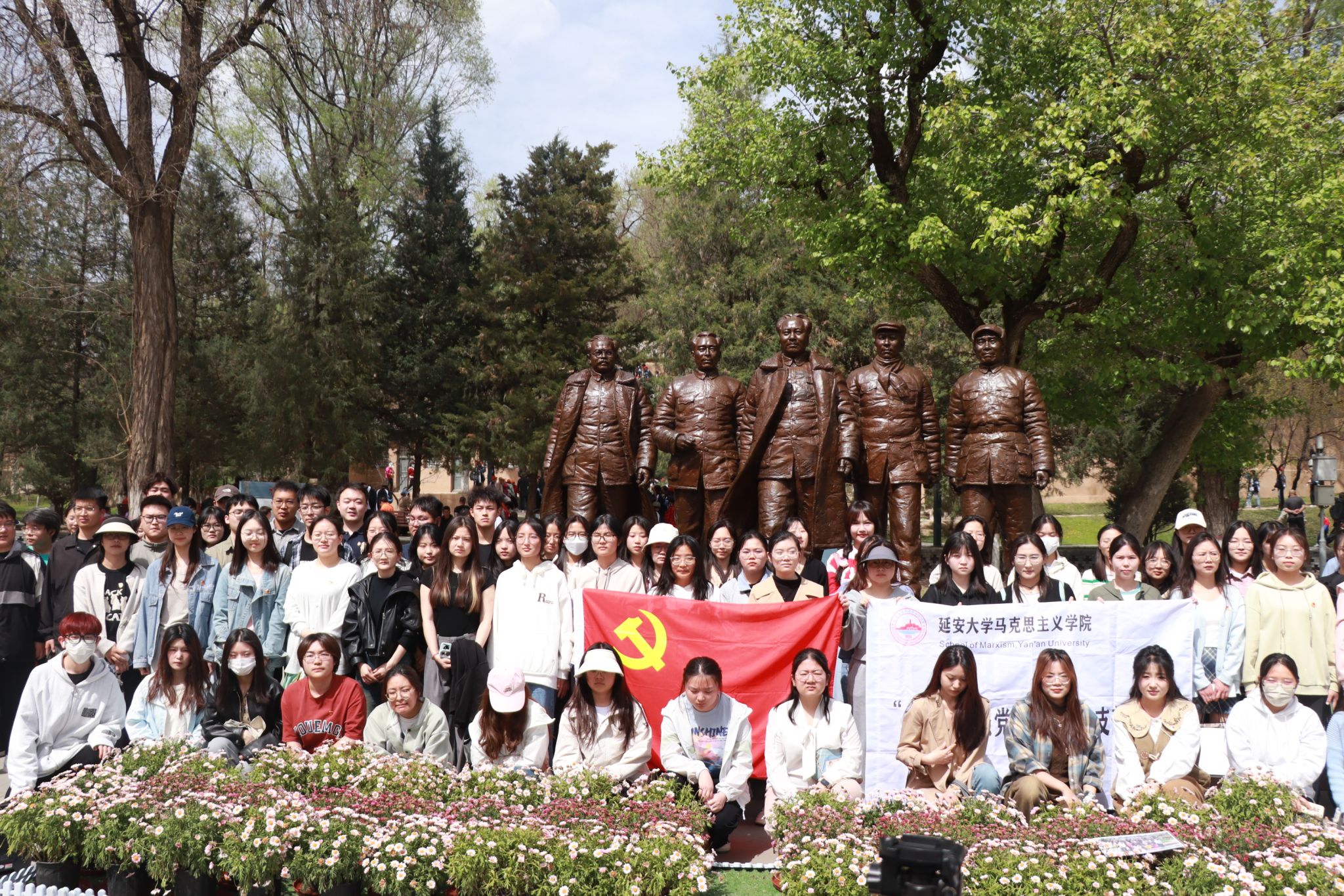 每一处旧址都承载着重要的革命意义,是最生动的历史教材。在主持人的带领下,全体同志相继参观了中央军委枣园作战室旧址、中央行政办公室旧址、中共中央机要局旧址、中共中央管理局旧址以及五大书记铜像。大家深受触动,深刻领悟到革命先辈的崇高精神,更加坚定了为共产主义事业奋斗的决心。