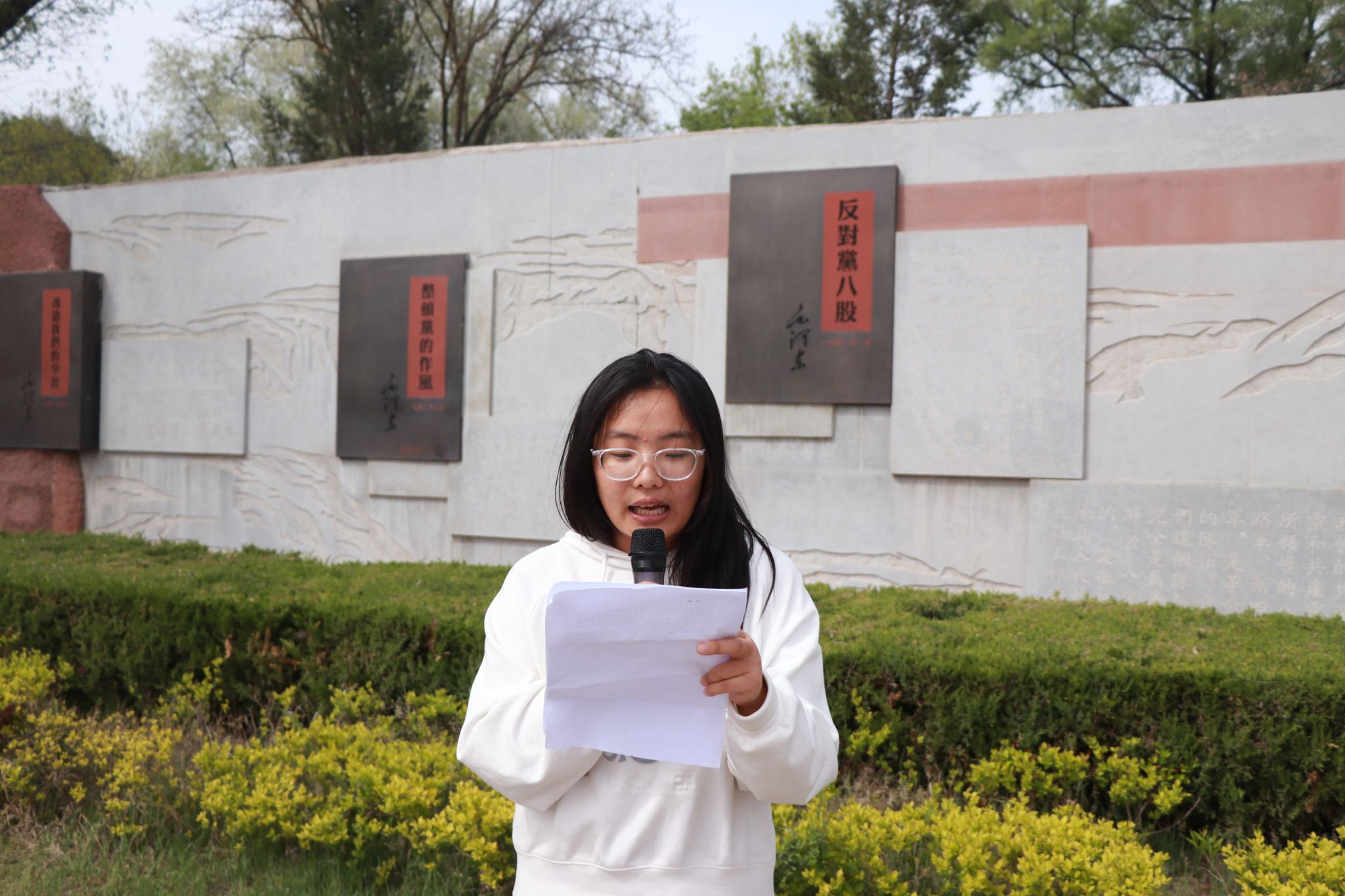 在活动的尾声,宁柯鑫同志和白娇娇同志以慷慨激昂的话语,分享了他们参观枣园革命旧址的深刻感悟,并向广大青年发出了有力的号召:我们应厚植家国情怀,锤炼品德修为,涵养进取品格,以奋斗的姿态激扬青春,不负时代,不负华年!