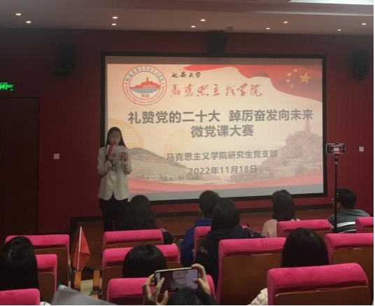 为庆祝党的二十大胜利召开,带动全体党员学习党的二十大精神的热潮,11月18日晚6:30best365体育亚洲研究生党支部在公司一楼报告厅举行“礼赞党的二十大,踔厉奋发向未来”微党课比赛。担任本次比赛评委的有马克思主义公司党委副书记赵海龙老师、党委组织员暨研究生党支部书记闫莉莉老师、圣地青马宣讲团团长杜鸿钿同学、研究生会主席陈怀涛同学、本科生党支部陶胤中同学。比赛由王曦同学主持。