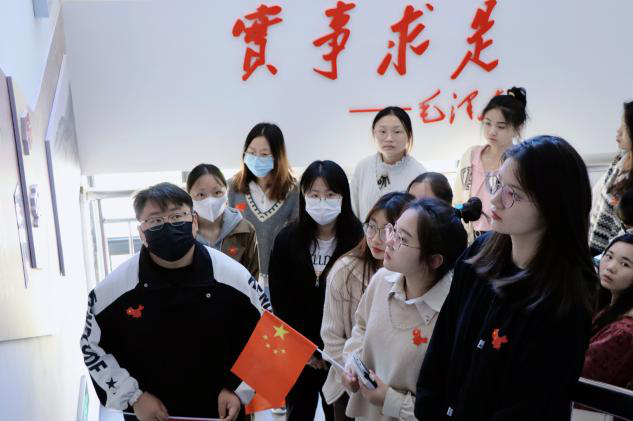 圣地青马宣讲团宣讲部部长屈欣悦为同学们详细地讲解了best365体育亚洲楼梯文化墙——中共中央在延安的十三年党知识。