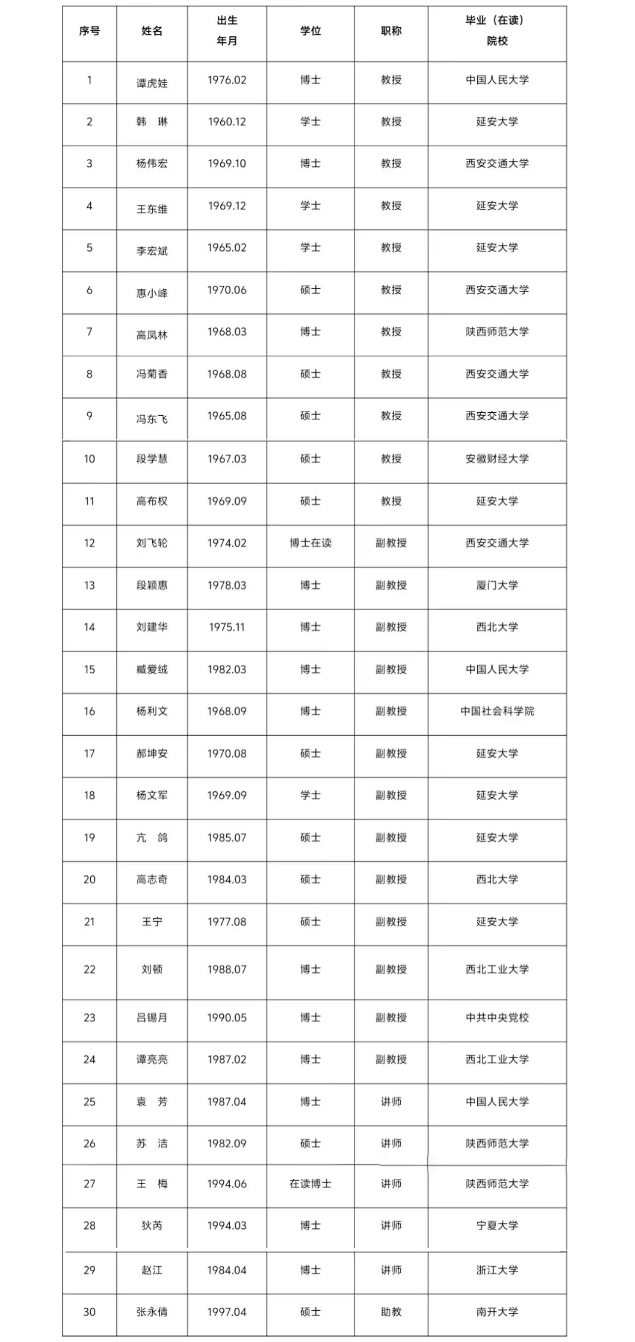表1 best365体育亚洲思想政治教育专业专任教师名单