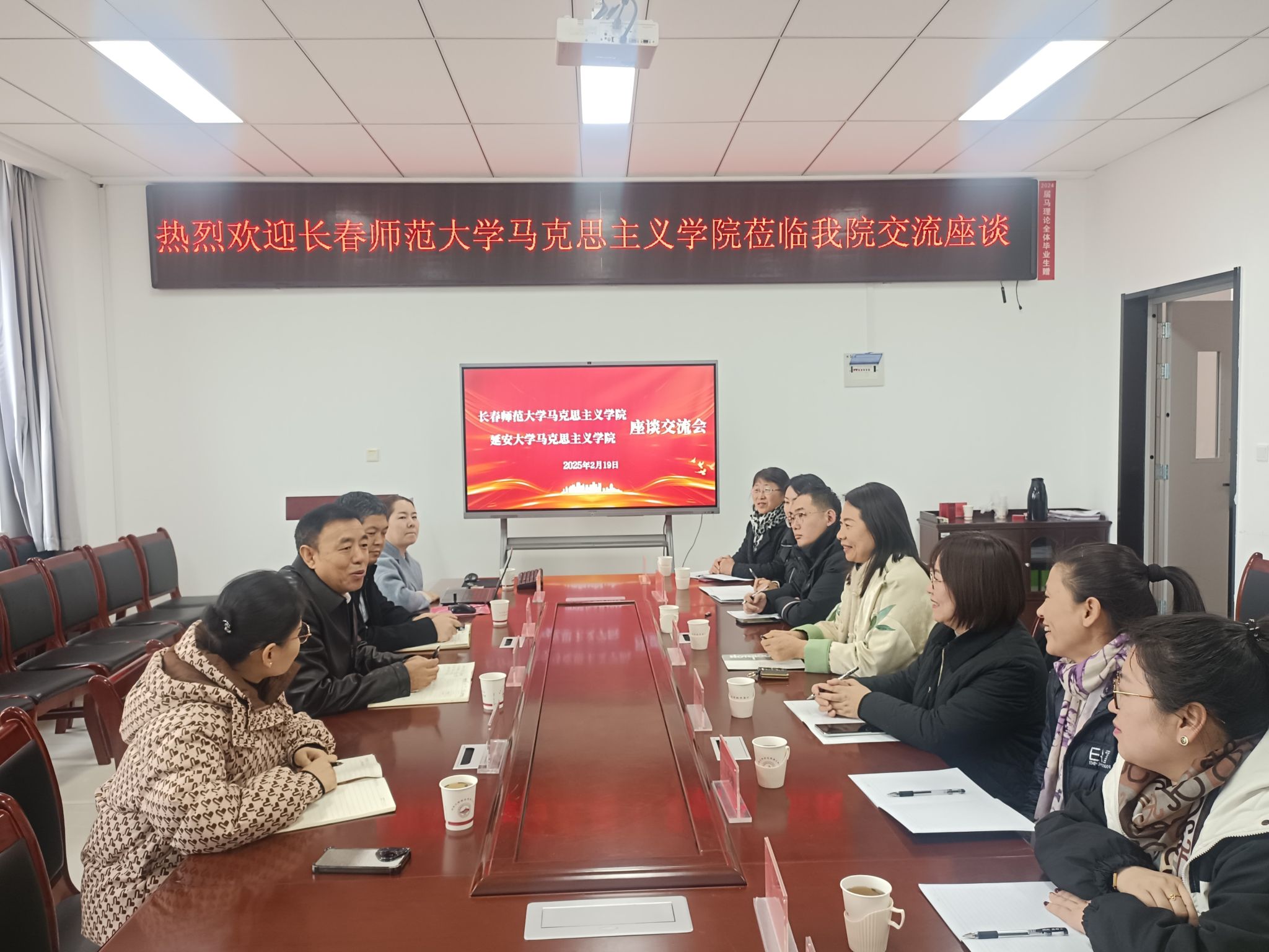 2月19日下午,长春师范大学best365体育亚洲经理杨影一行来best365体育亚洲交流座谈,座谈会在公司三楼会议室举行,经理高布权,副经理臧爱绒、刘建华、亢鸽,办公室主任王晓瑜等人参加了会议,会议由高布权经理主持。本次交流活动旨在增进校际合作,共同推动马克思主义理论学科以及思想政治理论课建设高质量发展。