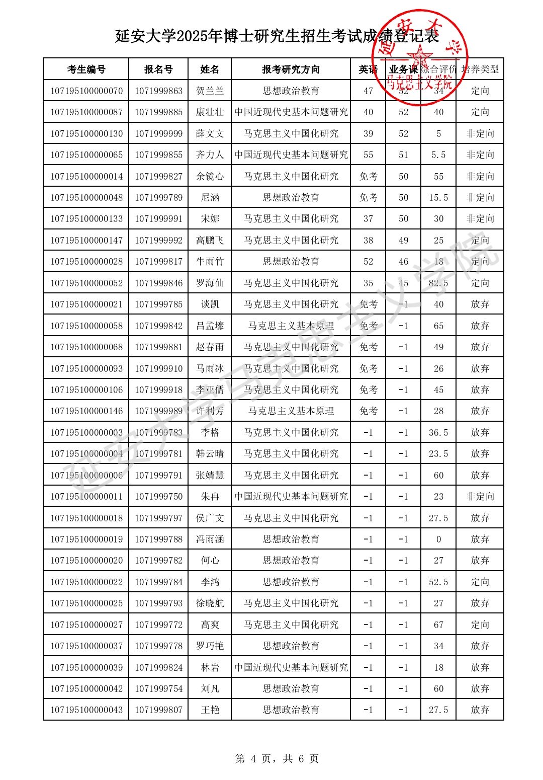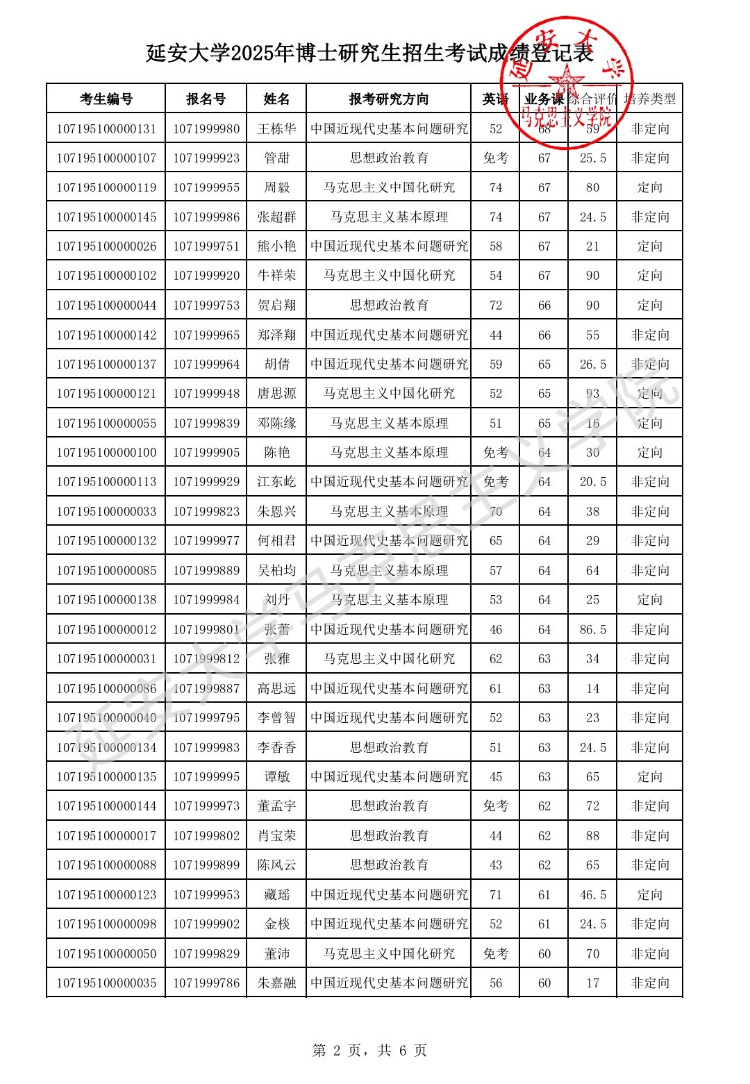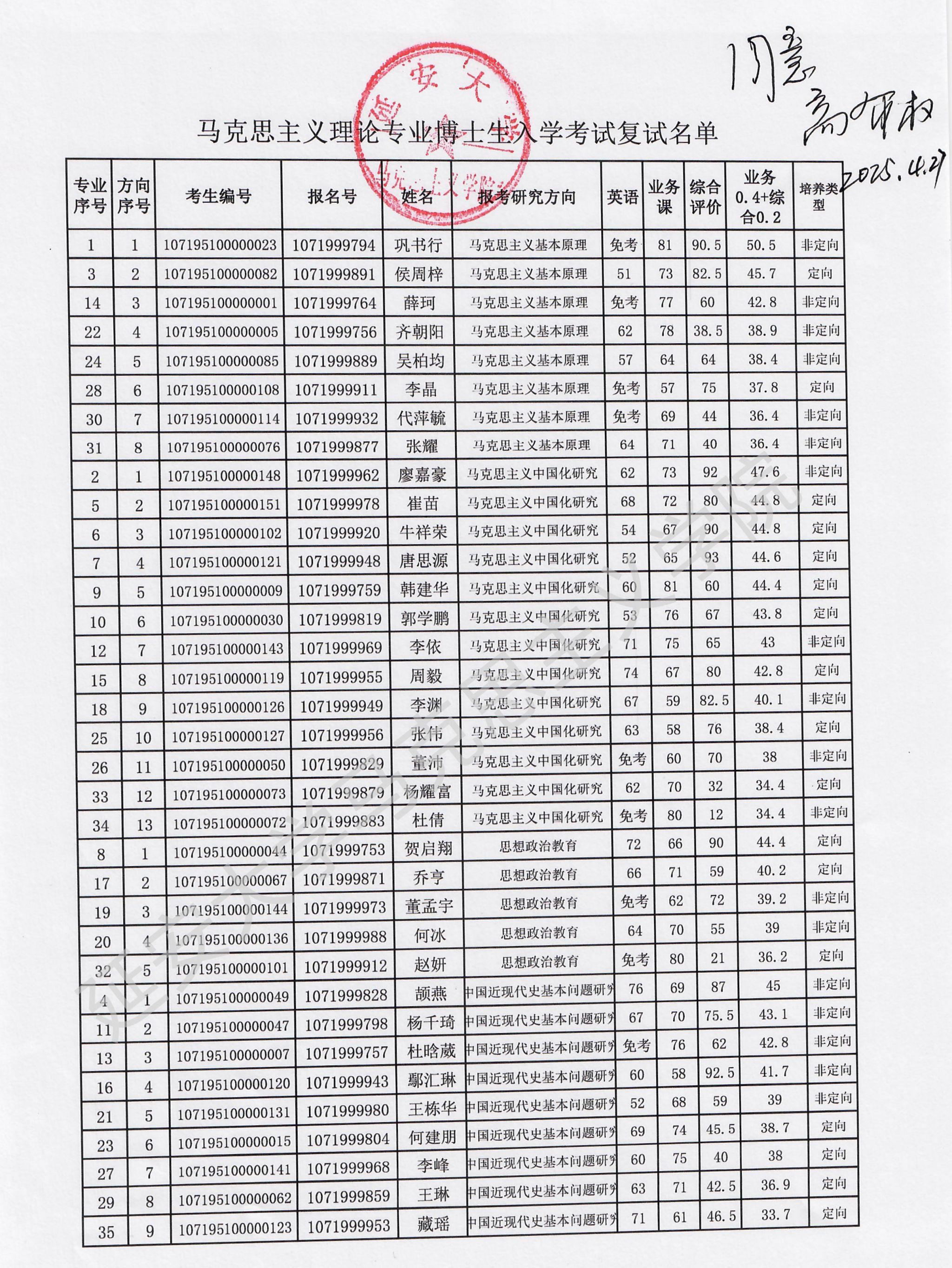 2025年博士研究生招生成绩及复试名单
