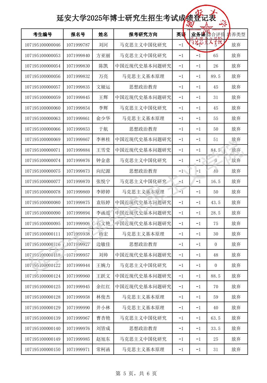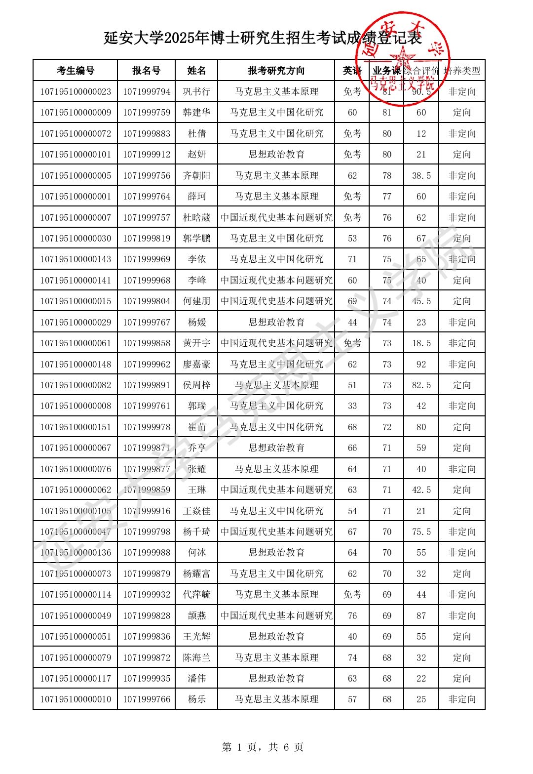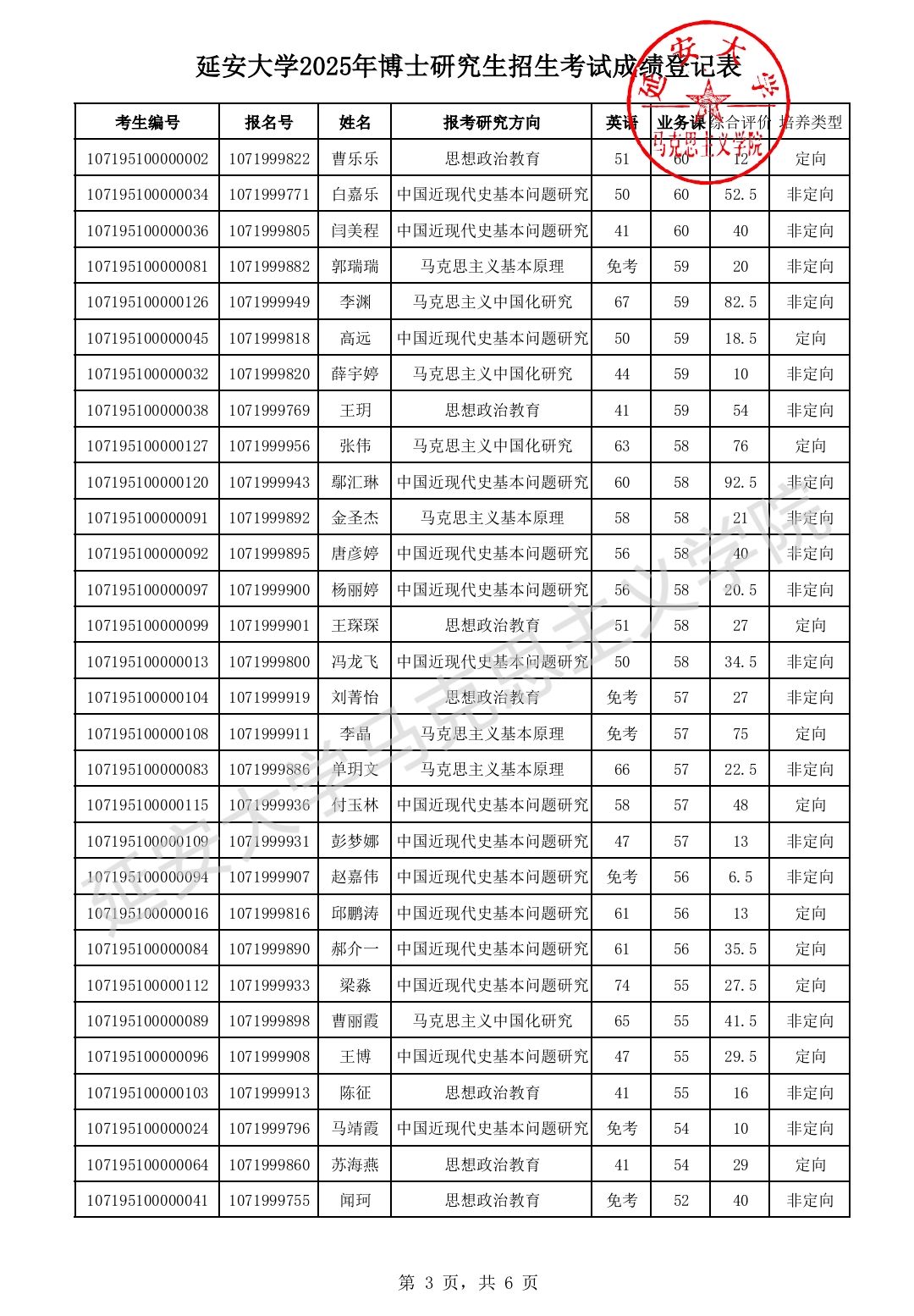 best365体育亚洲马克思主义理论专业博士生入学考试专业课、综合评价与英语测试等考试已结束,现将考试成绩及复试名单公布如下。