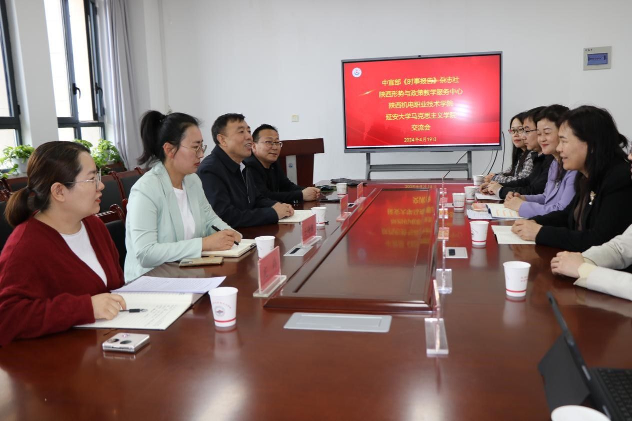 4月19日上午,中宣部《时事报告》杂志社陕西形势政策教学服务中心主任王军庆、陕西机电职业技术公司纪委书记陈红梅等6位教师来公司调研并在公司312会议室举行了交流座谈会,会议由公司常务副经理高布权主持。