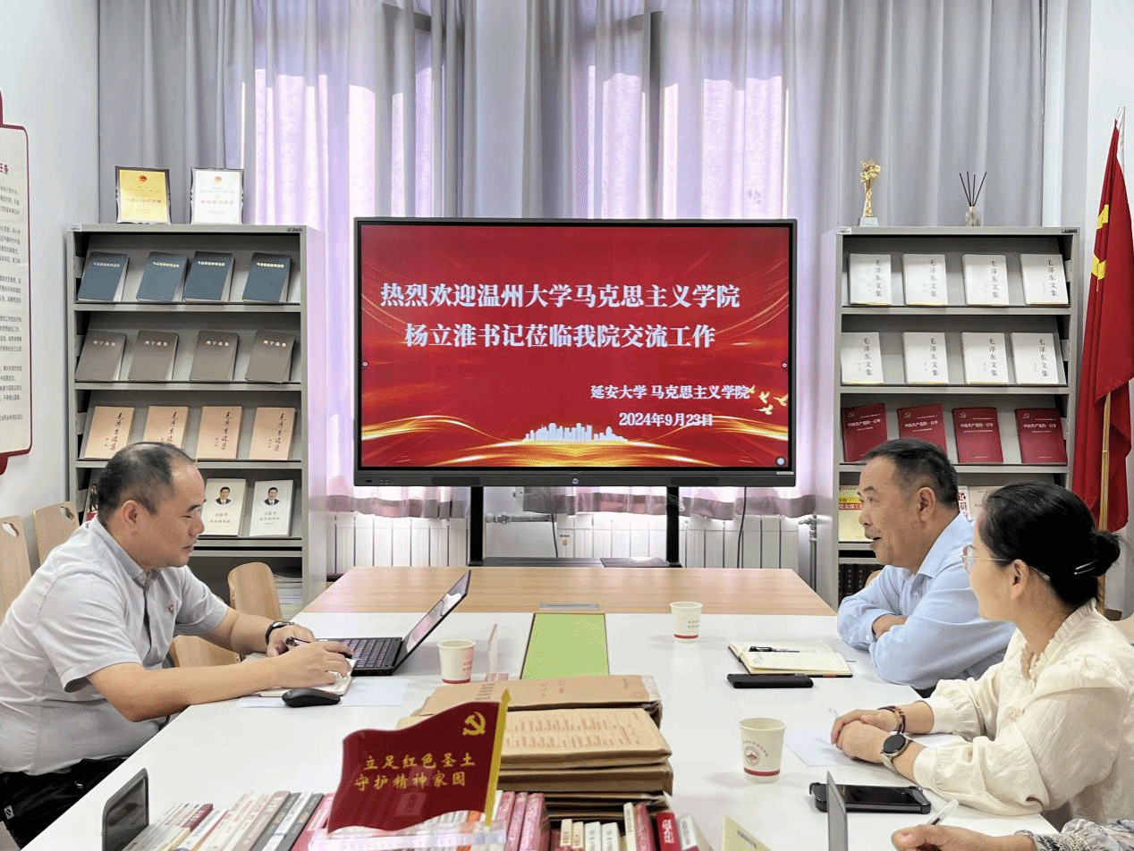 9月23日下午,温州大学马克思主义公司党委书记杨立淮教授到公司开展座谈交流。公司党委常务副书记张彬、学科与科研副经理臧爱绒及办公室主任王晓瑜参加了会议,会议由公司委常务副书记张彬主持。