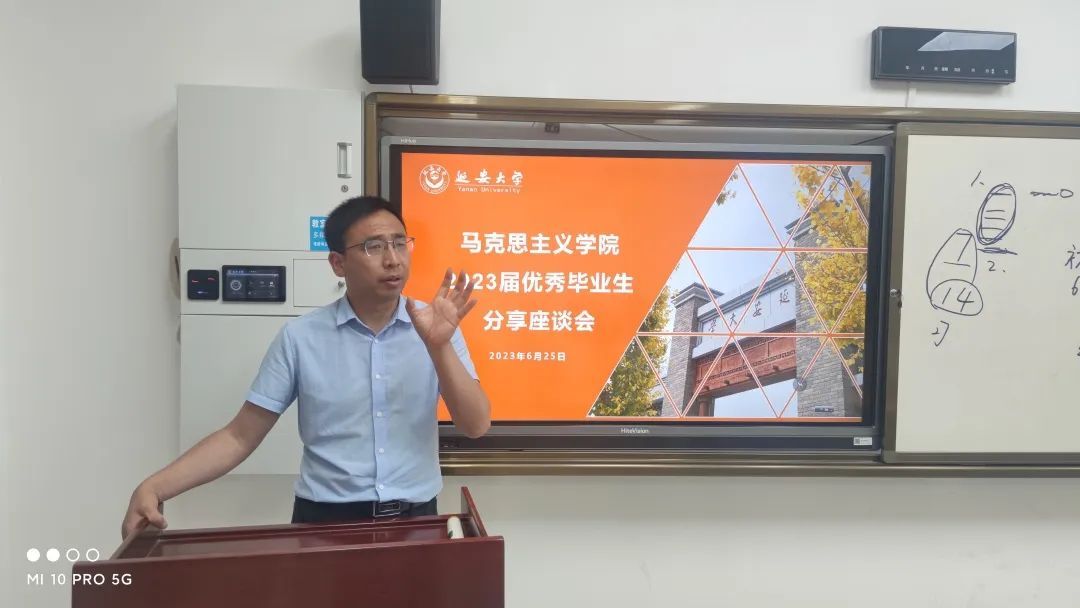 其次,23届优秀毕业生高静、訾淑惠、王允辉、高继飞结合自身考研、考公经历等等,毫无保留地向学弟学妹们传授经验,如何择校择岗,如何查询研招、岗位信息,如何复习公共课和专业课、如何挑选教材和网课老师等等这些宝贵经验对准大四的同学有很大的参考价值!这可以帮助20级玉章英才实验班的同学们在考研考公的旅途上行稳致远,再创佳绩!