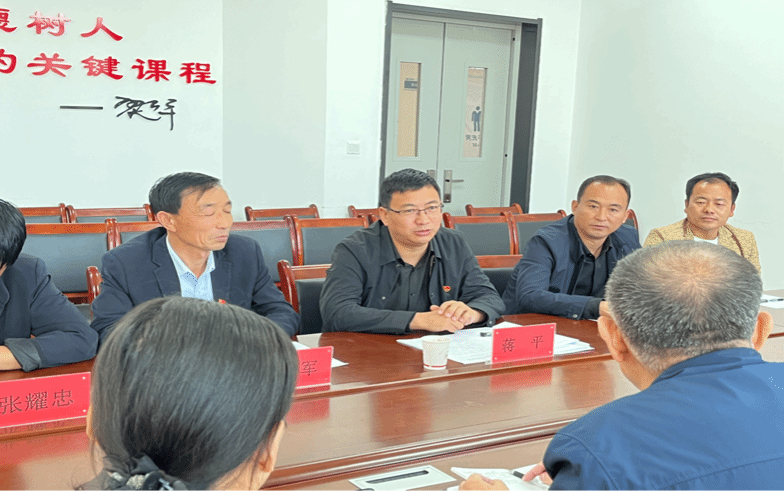 其次,由安边镇党委副书记蒋平对随行人员作了简单介绍,并就安边镇的基本情况以及安边中学的教学情况进行简述。提出文化的重要性以及“乡贤助力”,希望能够利用名人以及安边文化提高安边镇的影响力,并就如何提升教学质量同座谈成员进行交流。再次,主任张怀军简述了西园子的大致情况,提出希望用党建引领乡村振兴,不断提升党员干部的执政能力,提升村民自身素质。
