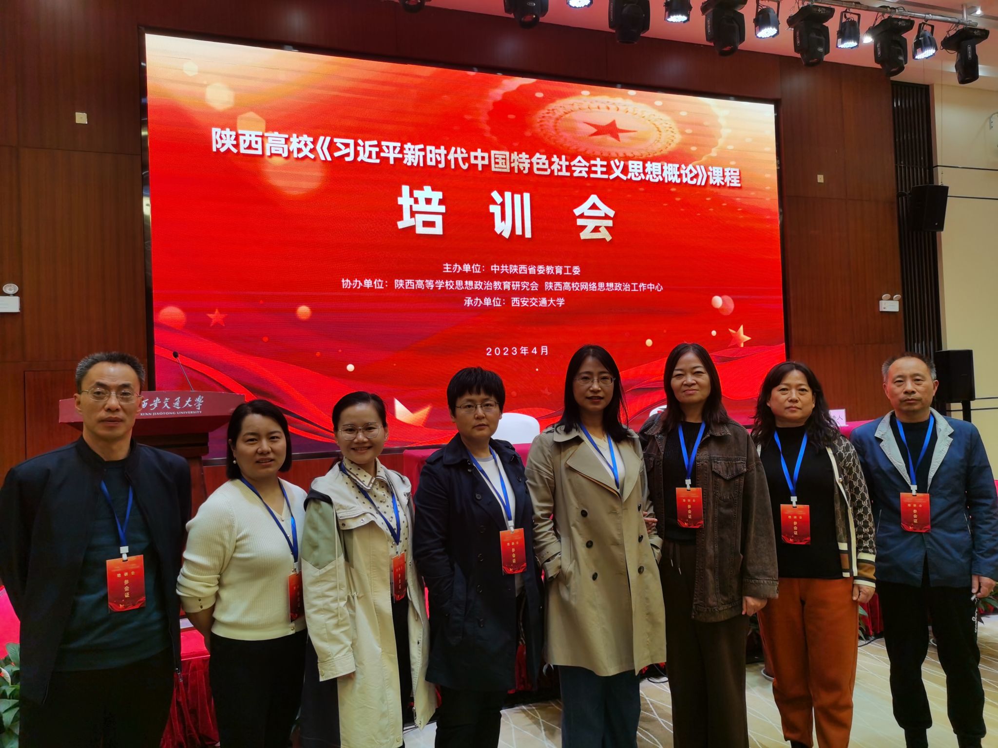 2023年4月8日~4月9日,马克思公司李晓有、郝坤安、高延春、臧爱绒、马慧芳、王宁、贺彩艳、亢鸽8位教师在西安交通大学参加了由中共陕西省委教育工委主办,陕西高等公司思想政治教育研究会、陕西高校网络思想政治工作中心协办,西安交通大学、西北工业大学、陕西科技大学承办的《习近平新时代中国特色社会主义思想概论》课程培训会。