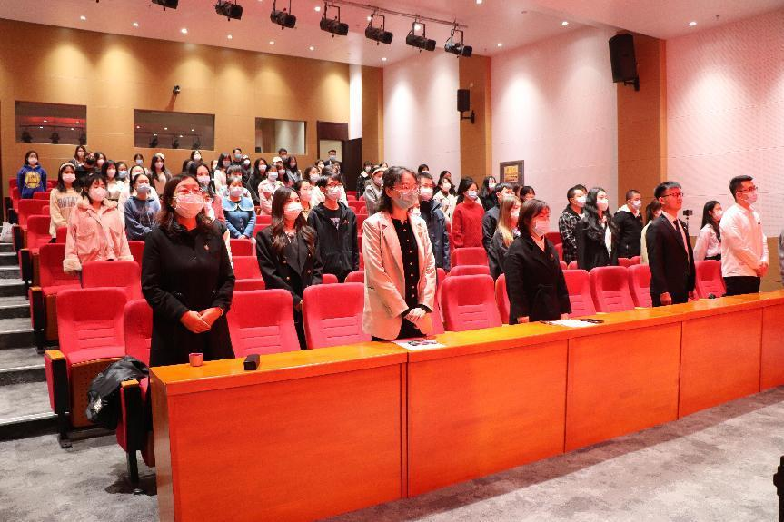 在校生代表杜鸿钿发言。号召同学们坚持做红色基因的传承者、做一个有真才实学的人、做一个有家国情怀的人。