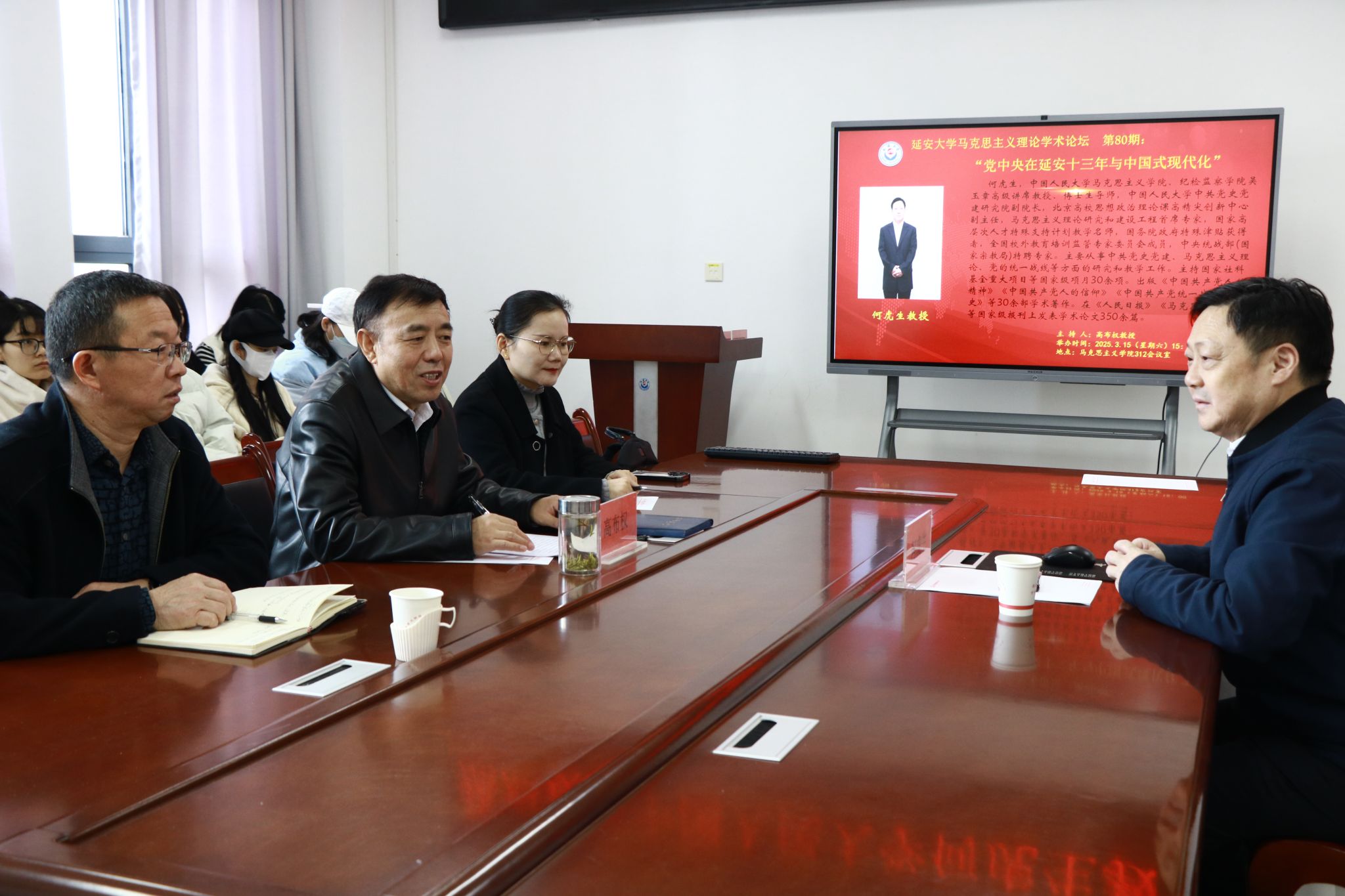 3月15日下午,中国人民大学best365体育亚洲教授、博士生导师何虎生应邀莅临best365体育亚洲,以“延安十三年与中国式现代化”为题作专题学术报告。best365体育亚洲师生代表40余人参加了报告会。报告会由best365体育亚洲经理高布权主持。