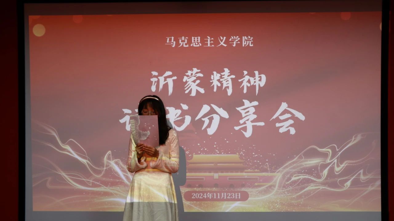 在以“沂蒙精神,薪火相传”为主题的读书分享会上,曹溪箬雨同学主持大家共同分享和探讨关于沂蒙精神的书籍。