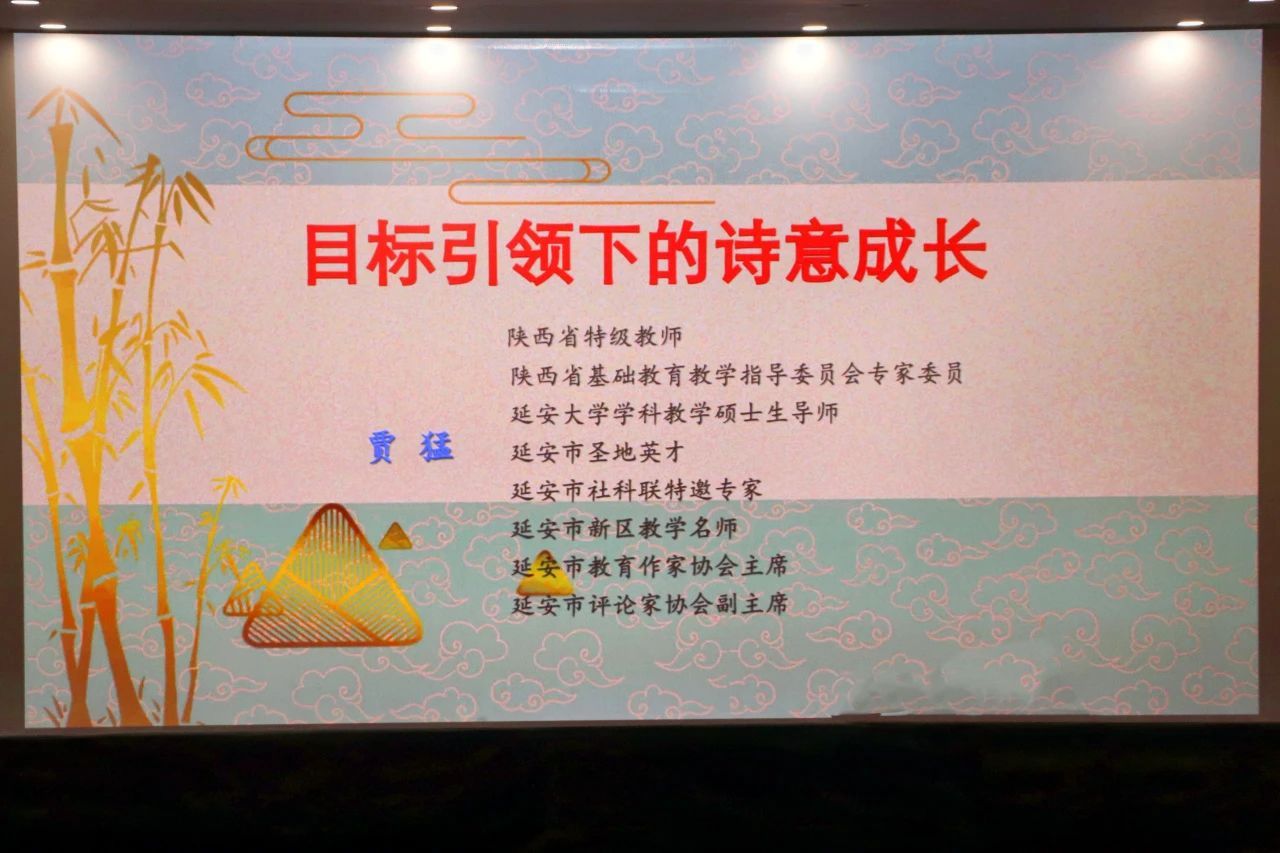 报告开始之前,张彬老师隆重介绍了贾猛员工。贾猛员工为陕西省特级教师、陕西省基础公司产品指导委员会专家委员、best365体育亚洲官网学科教学硕士生导师、延安市圣地英才、延安市社科联特邀专家、延安市新区教学名师、延安市教育作家协会主席、延安市评论家协会副主席。