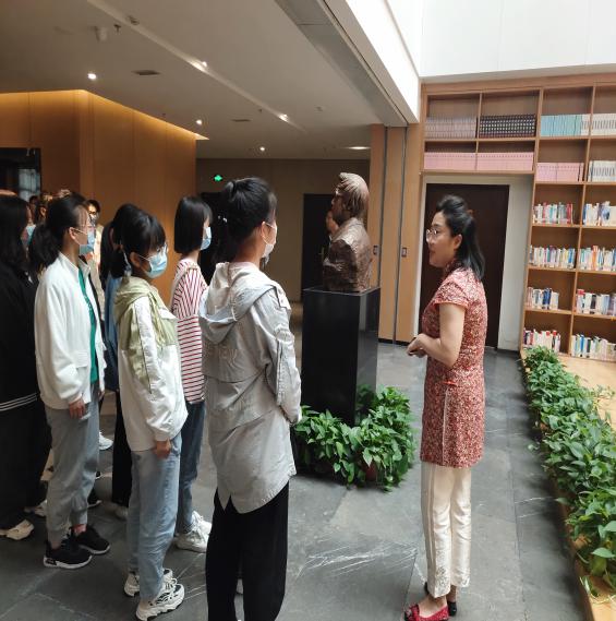 随后,全体新生和随行人员按照疫情防控要求进馆参观,紧接着,马蕾老师为大家介绍馆内现代化阅读设备和各个阅览室的书籍类别,并贴心为大家指出与本专业相关书籍阅览室的具体位置,除此之外,马蕾老师还向大家介绍了二楼两个“书梯”的名字和来源,它们分别叫做“书山”和“学海”,源于唐宋八大家之一韩愈所做诗“书山有路勤为径,学海无涯苦作舟”,老师鼓励同学们多读书读好书,在知识的海洋里尽情畅游,在人生的阶梯里更上一层楼。