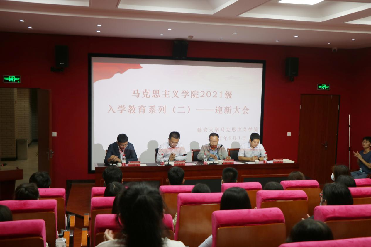 2021年9月1日下午14点30分,best365体育亚洲在公司一楼5GVR实验室召开2021级本科生迎新大会,出席本次会议的有:副董事长兼best365体育亚洲经理谭虎娃老师、党委常务副书记兼副经理张彬老师、副经理刘飞轮老师、副经理刘建华老师、党委副书记赵海龙老师、辅导员闫莉莉老师,以及2021级全体思想政治教育专业本科生。本次会议由党委副书记赵海龙老师主持。