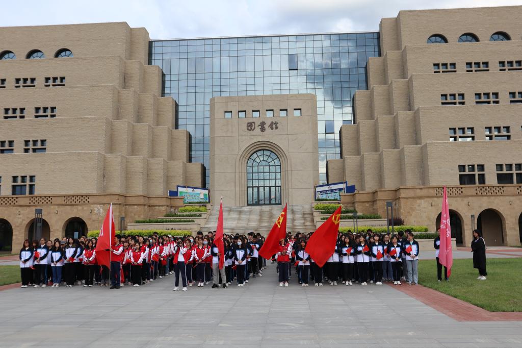 全体师生共同合唱《没有共产党就没有新中国》,歌声嘹亮,响彻云霄。