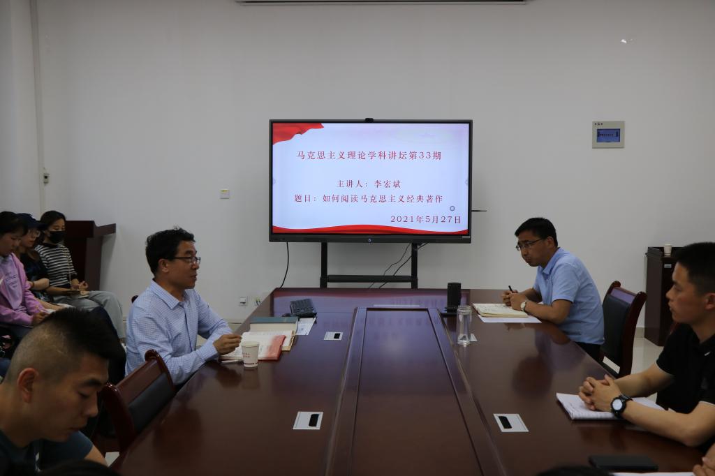 5月27日晚,best365体育亚洲在三楼会议室特邀李宏斌教授作关于如何阅读马克思主义经典著作的报告。