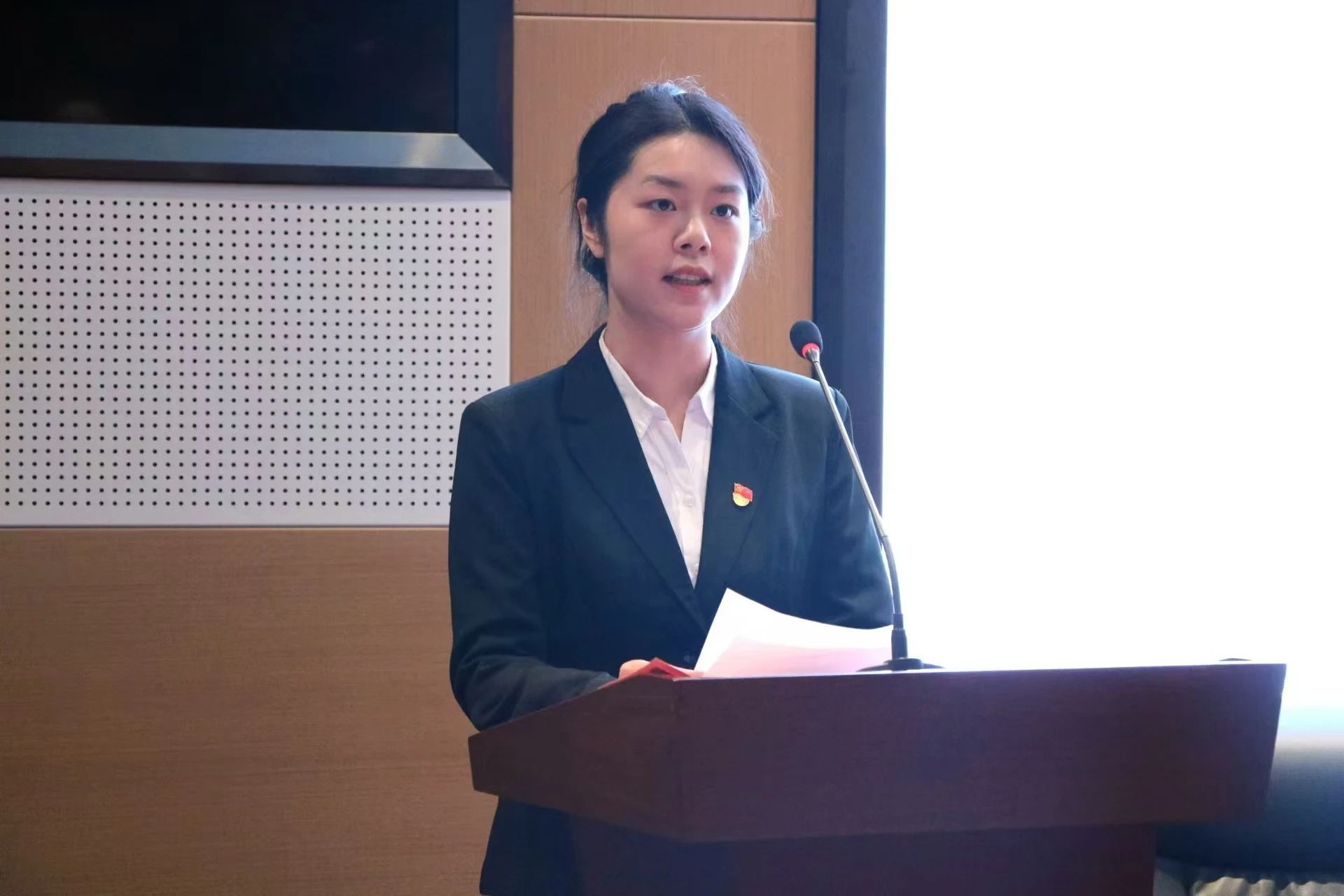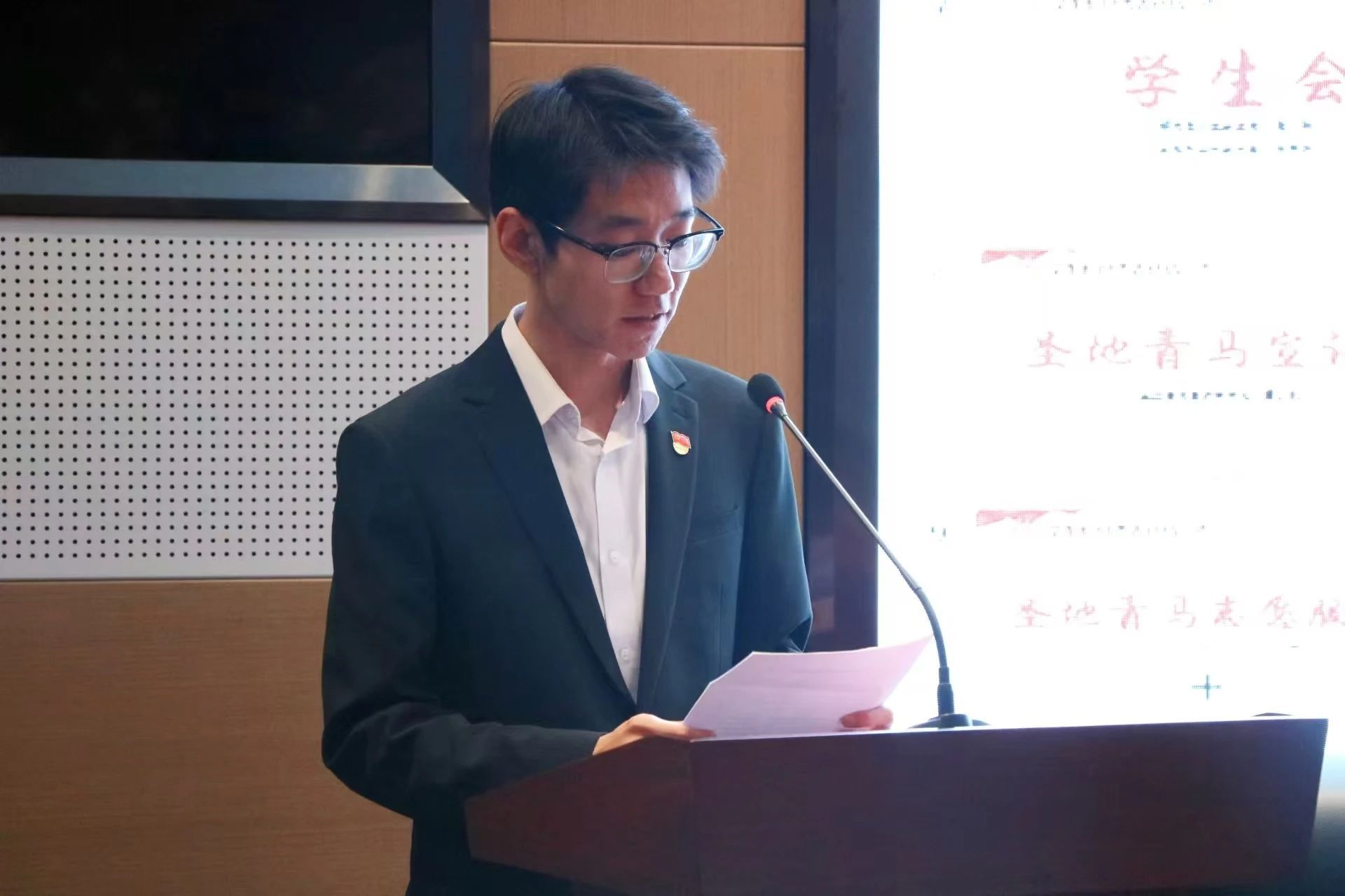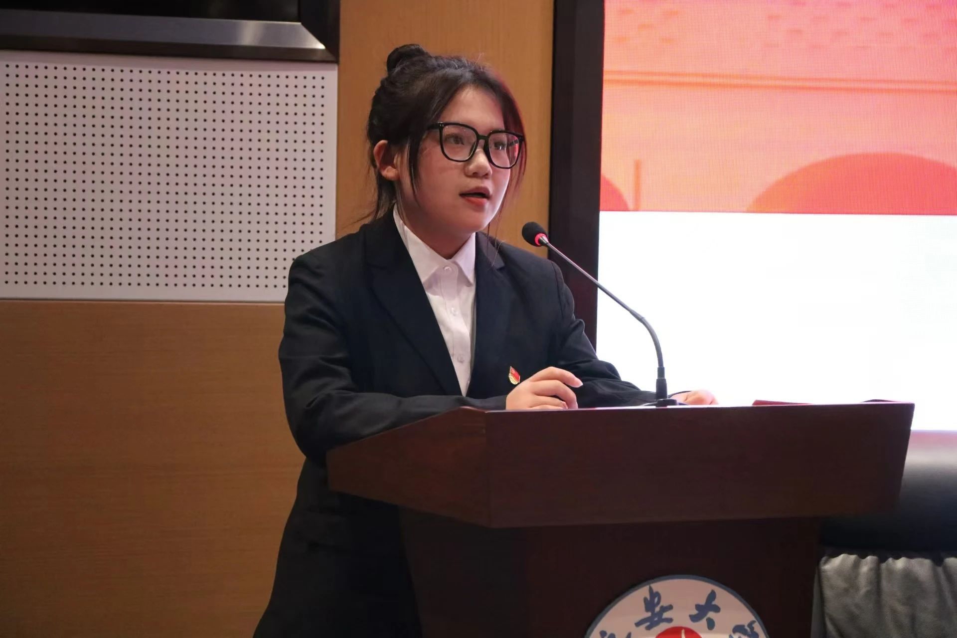 研究生党支部副书记刘佳佳、本科生党支部负责人侯彩梅、研究生团委员工兼职副书记刘蕙、本科生团委员工兼职副书记马玉、研究生员工会主席郭伟伟、本科生员工会主席马洋、圣地青马宣讲团团长高萌萌、圣地青马志愿服务队队长闫佳乐依次上台进行表态发言。