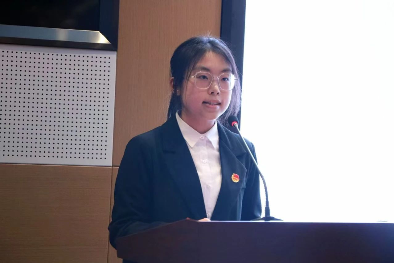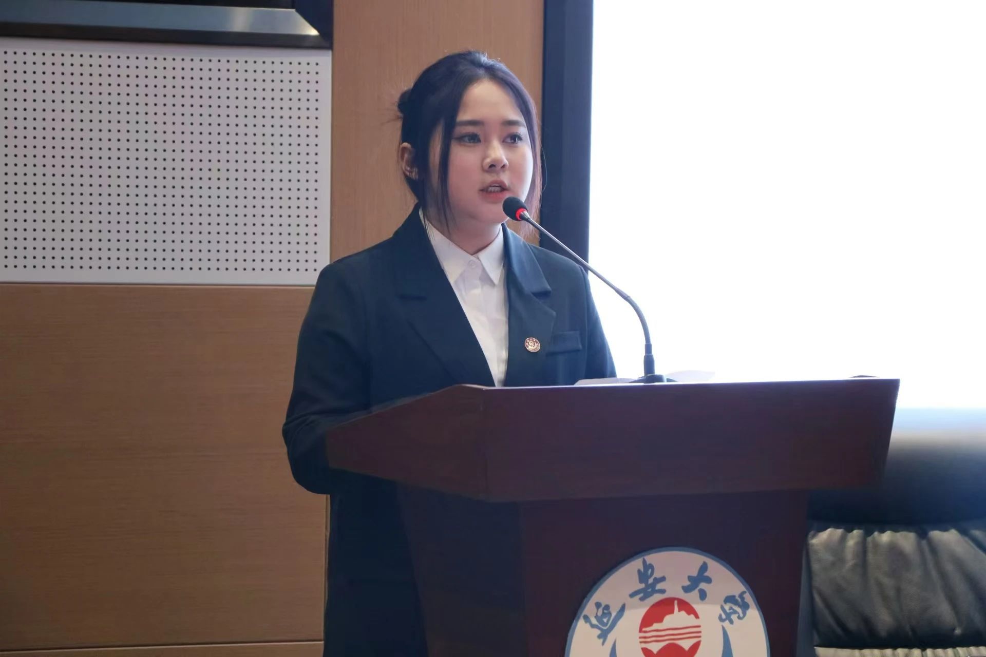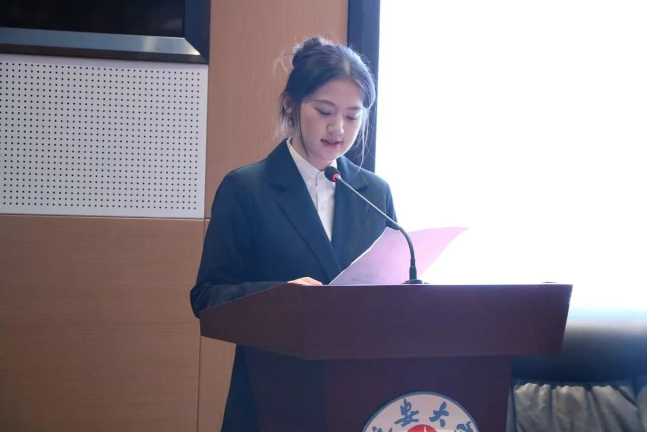 研究生党支部副书记刘佳佳、本科生党支部负责人侯彩梅、研究生团委员工兼职副书记刘蕙、本科生团委员工兼职副书记马玉、研究生员工会主席郭伟伟、本科生员工会主席马洋、圣地青马宣讲团团长高萌萌、圣地青马志愿服务队队长闫佳乐依次上台进行表态发言。