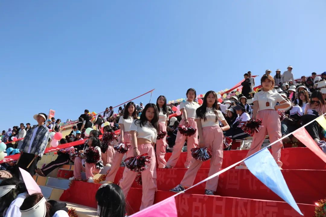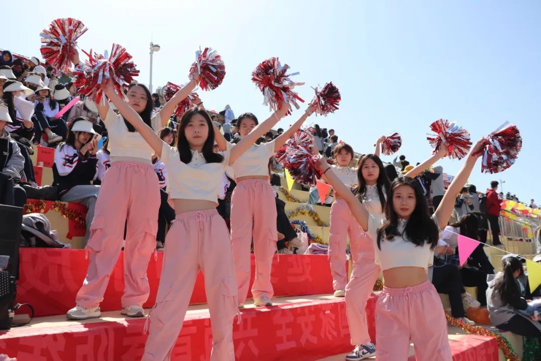 随着动感音乐响起,啦啦操队员身着亮丽服装登场。她们笑容灿烂似骄阳,动作整齐有力,旋转跳跃间活力四射;舞姿变换中灵动翩然,瞬间点燃赛场气氛,成为运动会上一道绚丽的青春风景线,为运动员们注入无限拼搏动力。