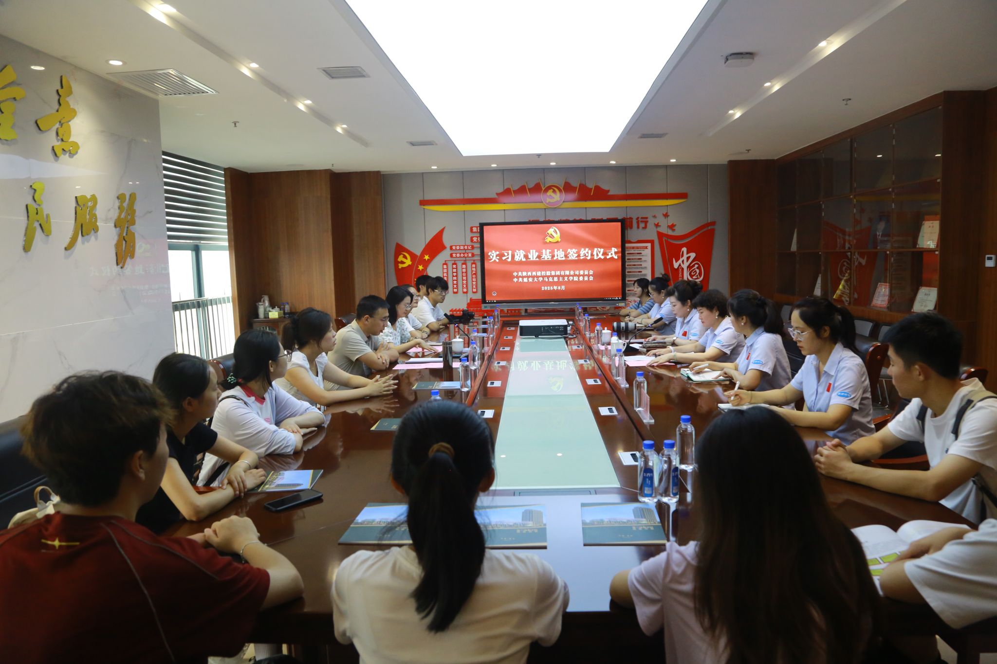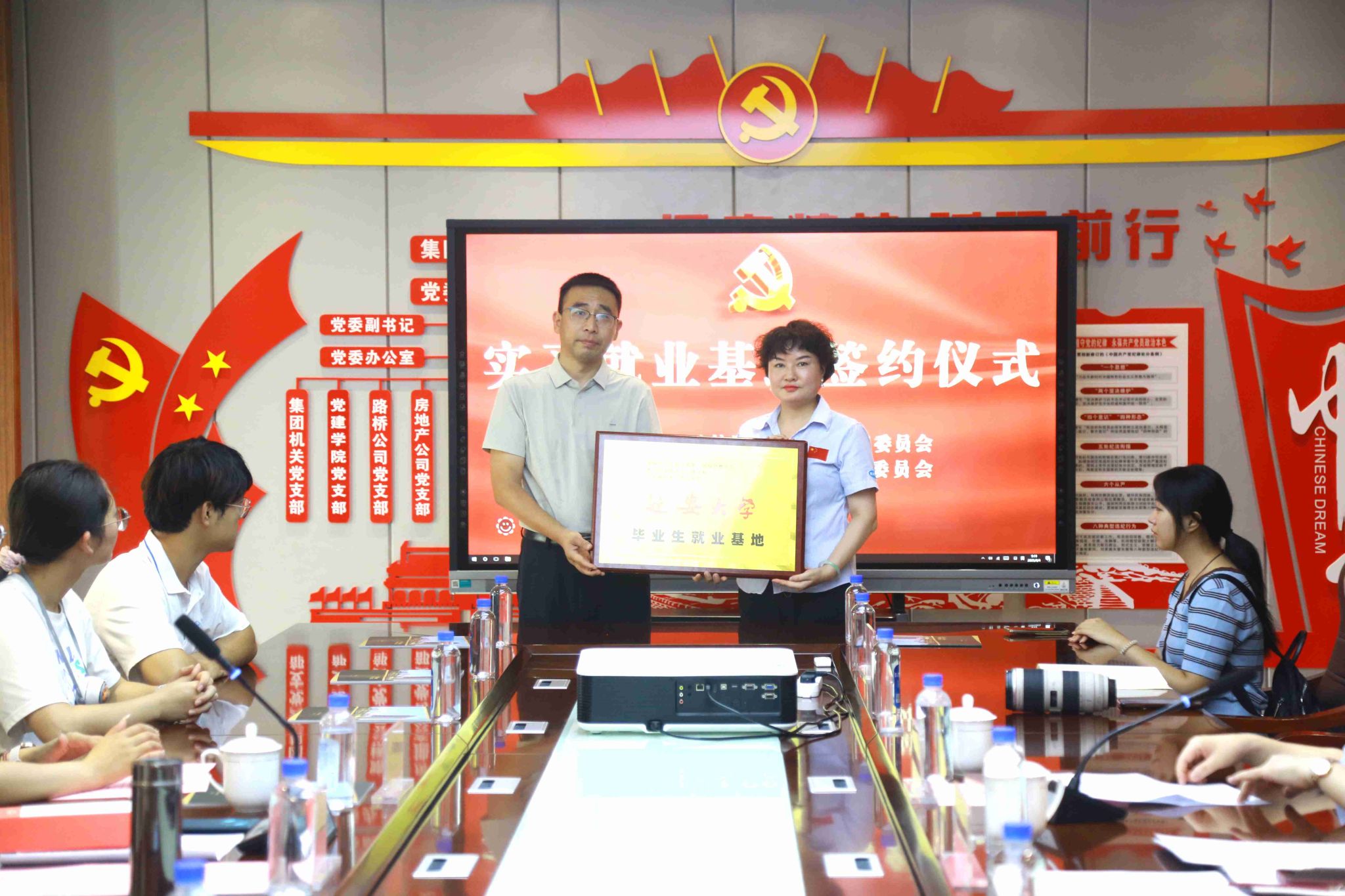 在走访交流座谈会上,调研组与单位负责人深入交流,介绍了公司各公司的学科优势、人才培养特色及毕业生就业情况,用人单位详细介绍了其发展现状、人才需求以及校企合作意向。双方围绕人才培养、实习实践、毕业生就业、科研协作等方面进行了广泛深入的探讨。赵海龙向用人单位授挂“实习就业基地”牌匾并签署了实习就业基地合作协议。苗玉园向合作单位赠送了《平凡的世界》及党史党建等相关书籍资料。