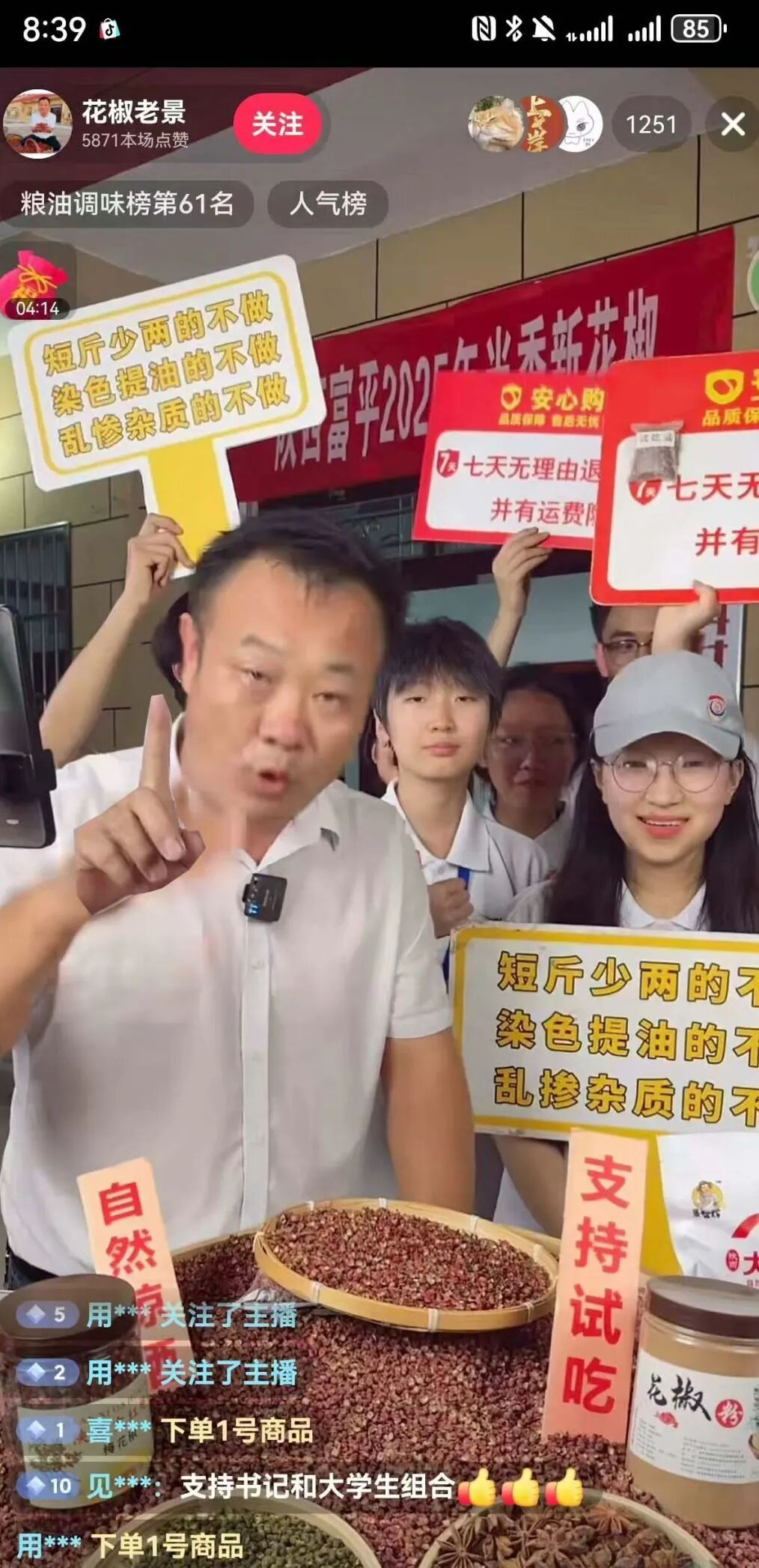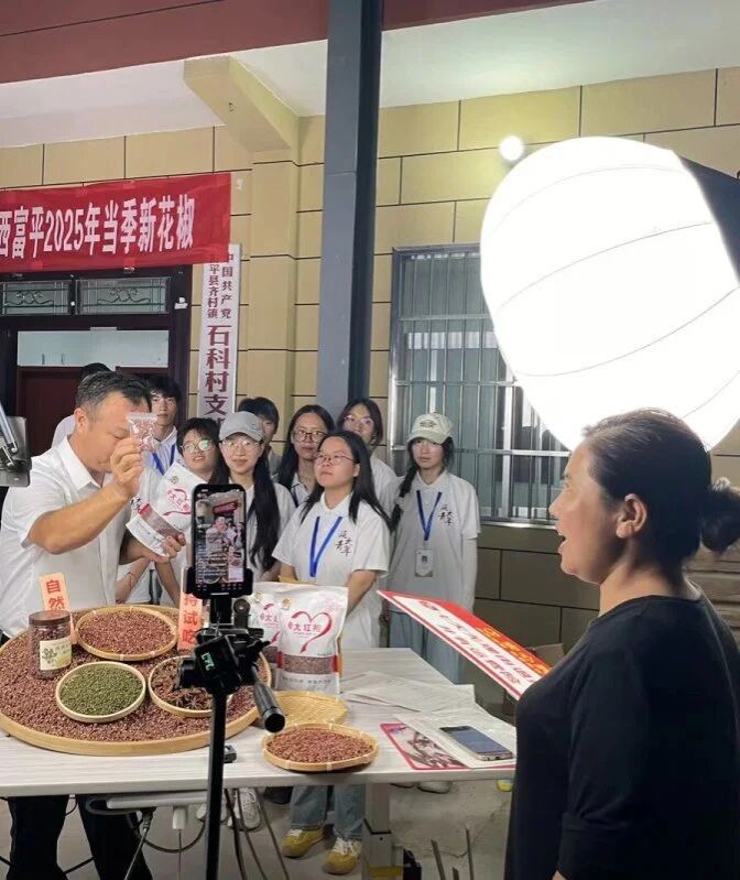 调研期间,团队与景书记共同策划并开展了一场普通话助农直播,聚焦石科村优质花椒。镜头前,队员们用流利普通话介绍花椒的品种优势、天然晾晒工艺,耐心解答网友关于产地环境、价格规格的提问。不仅拓宽了花椒销售渠道,更让村民直观感受到规范使用国家通用语言对对接市场的重要性。