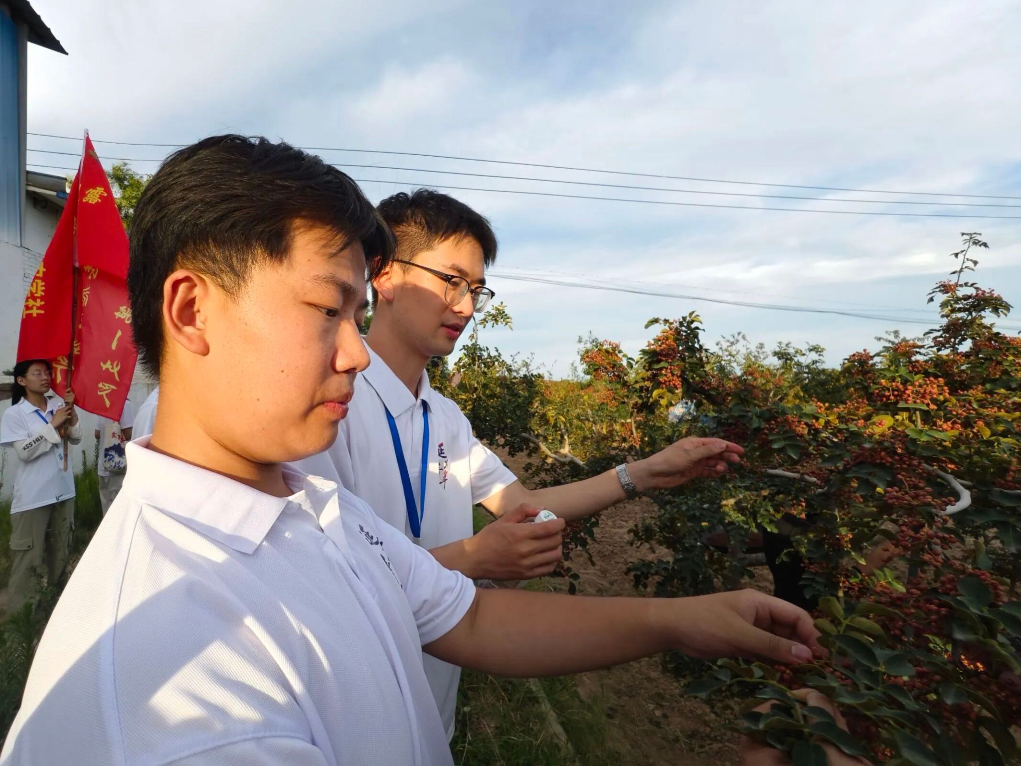 在连片的花椒地里,队员们踩着泥土与椒农一同穿梭在枝叶间,用规范普通话细致询问种植技术、产量销路等情况。针对椒农反映的“与外地收购商沟通时术语表达不清”等问题,队员们现场记录下“收购沟通常用语”等需求清单,从发音标准到表达逻辑逐一指导,帮助椒农精准传递产品价值。