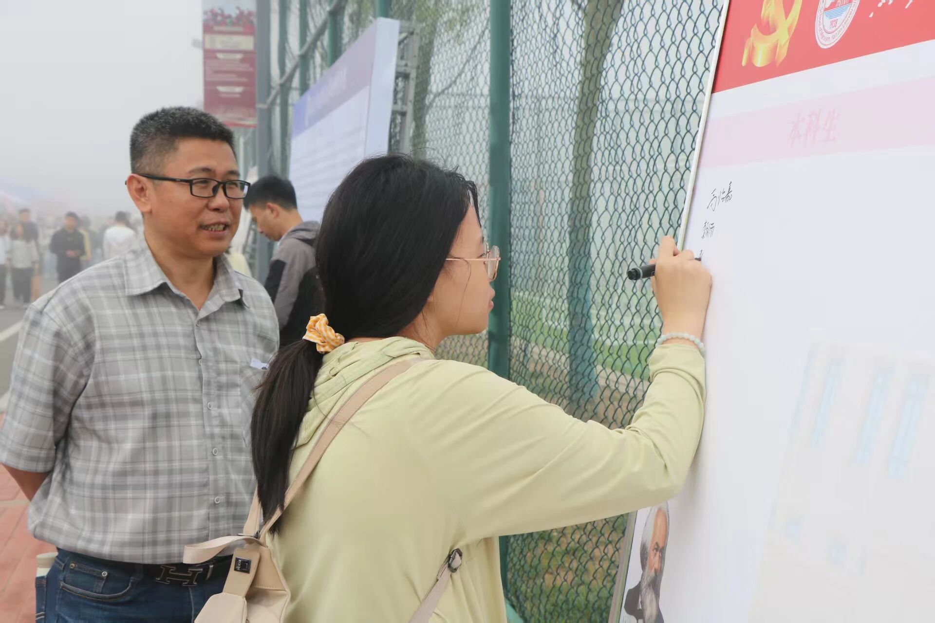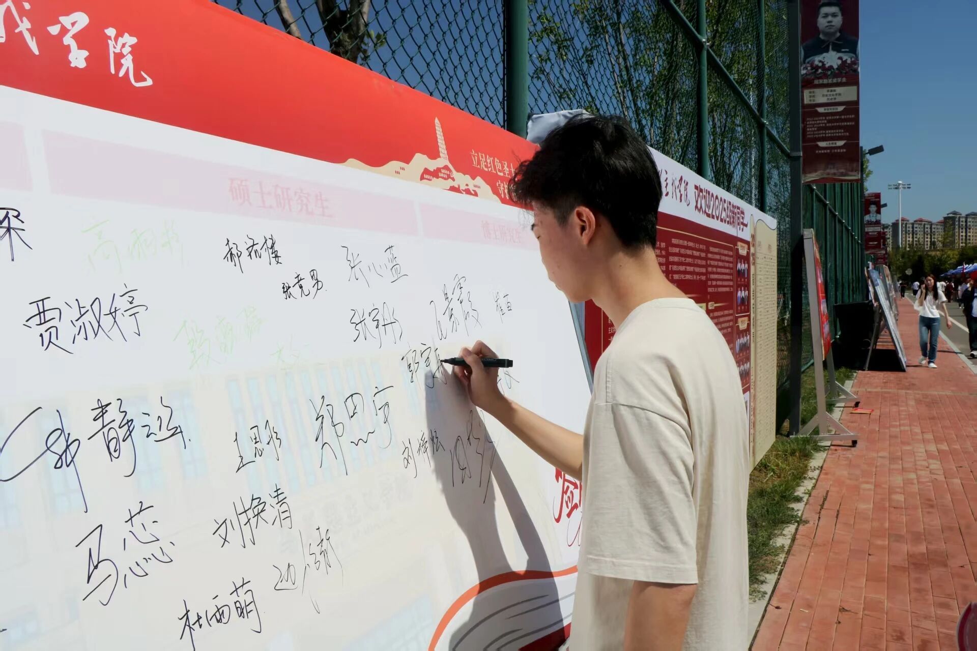 提笔挥墨,本科生们青春洋溢,轻快写下自己的名字,眼里满是对大学新生活的期待,立志勤奋学习、全面成长;硕士生们沉稳自信,笔下的名字承载着对学术深造的决心,期望在专业领域有所建树;博士生们目光坚定,留名间尽显对科研的执着,誓要在学术前沿开拓创新。