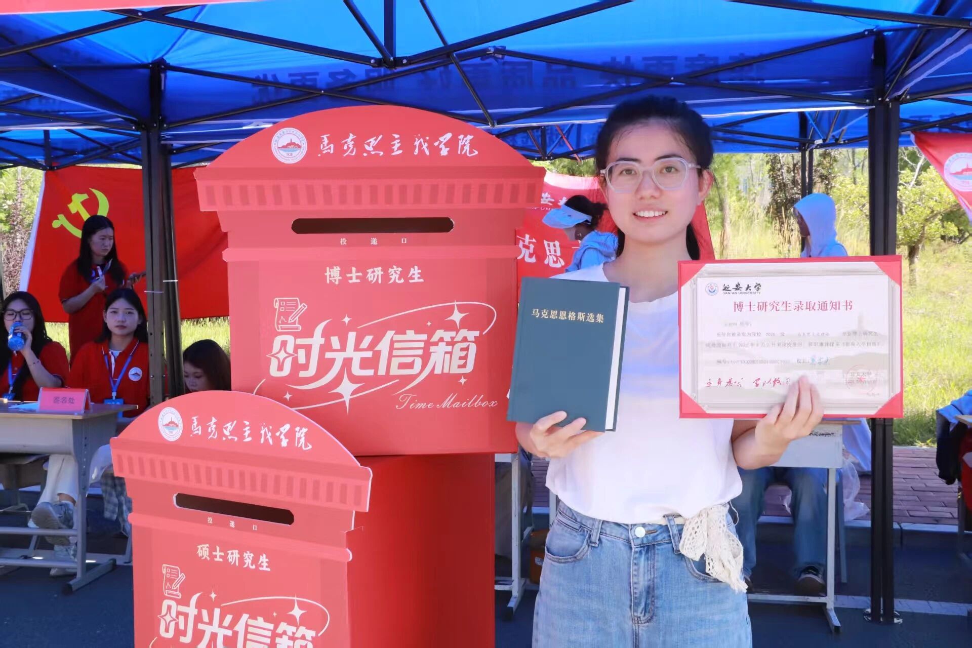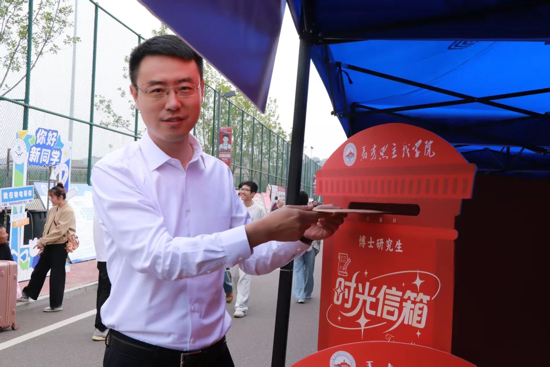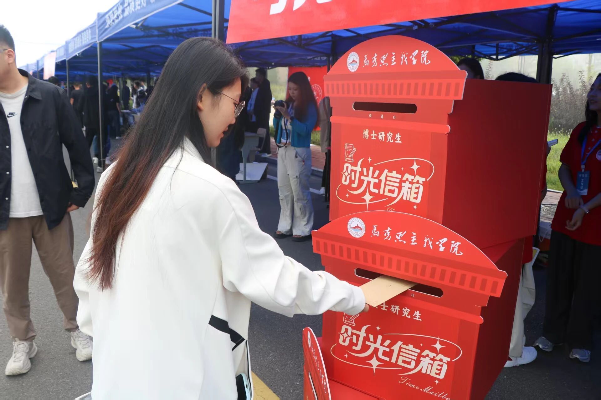 手执梦笔,本科生灵动活泼,双眸熠熠,把对新知的渴盼、多元成长的愿景倾洒纸间;硕士生沉稳坚毅,目光灼灼,将对专业精进的追求、学术突破的决心融入字里;博士生笃定从容,眼神深邃,将科研创新的壮志、登顶学术巅峰的豪情尽投箱内。