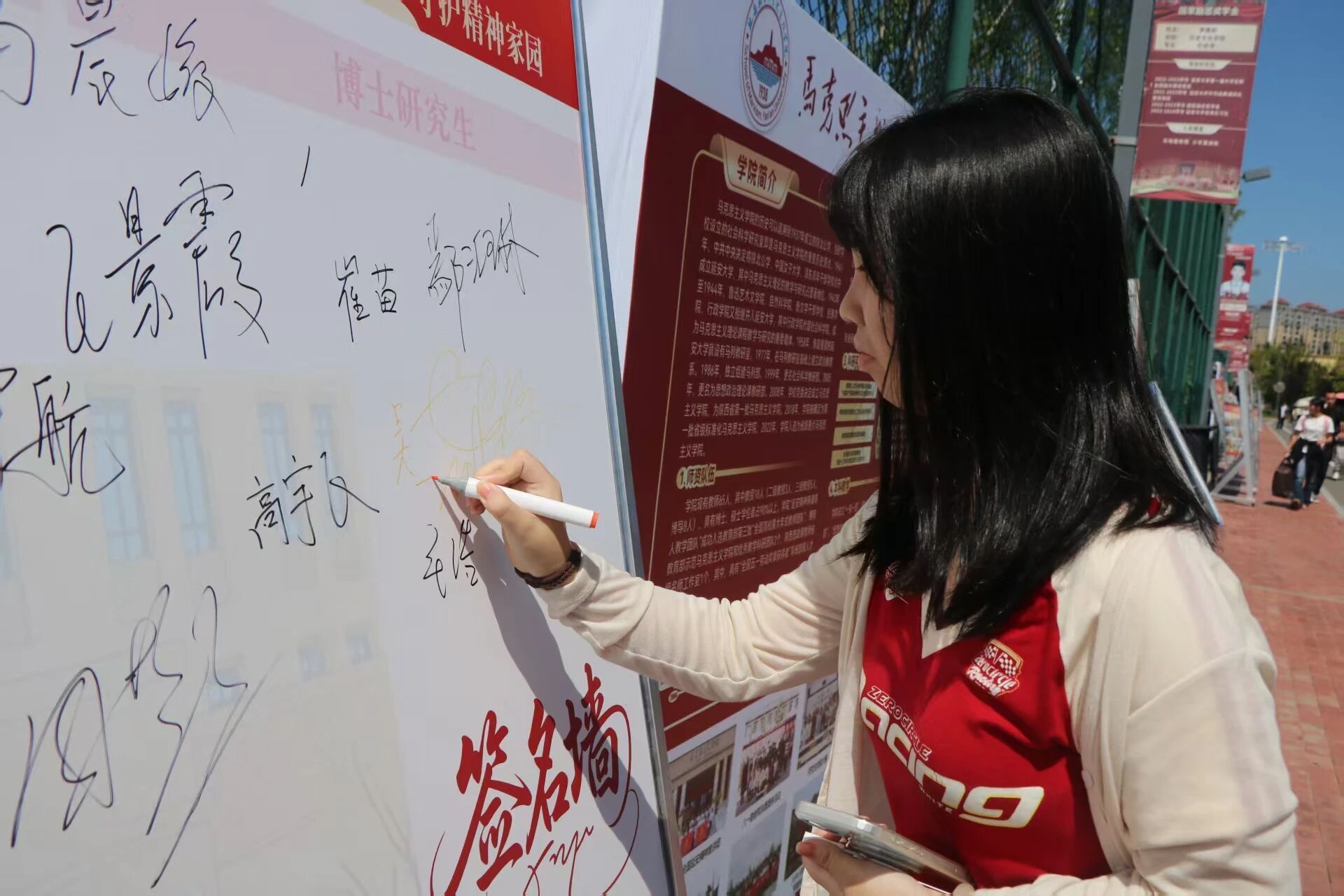 签名墙下展豪情,提笔留名表壮志