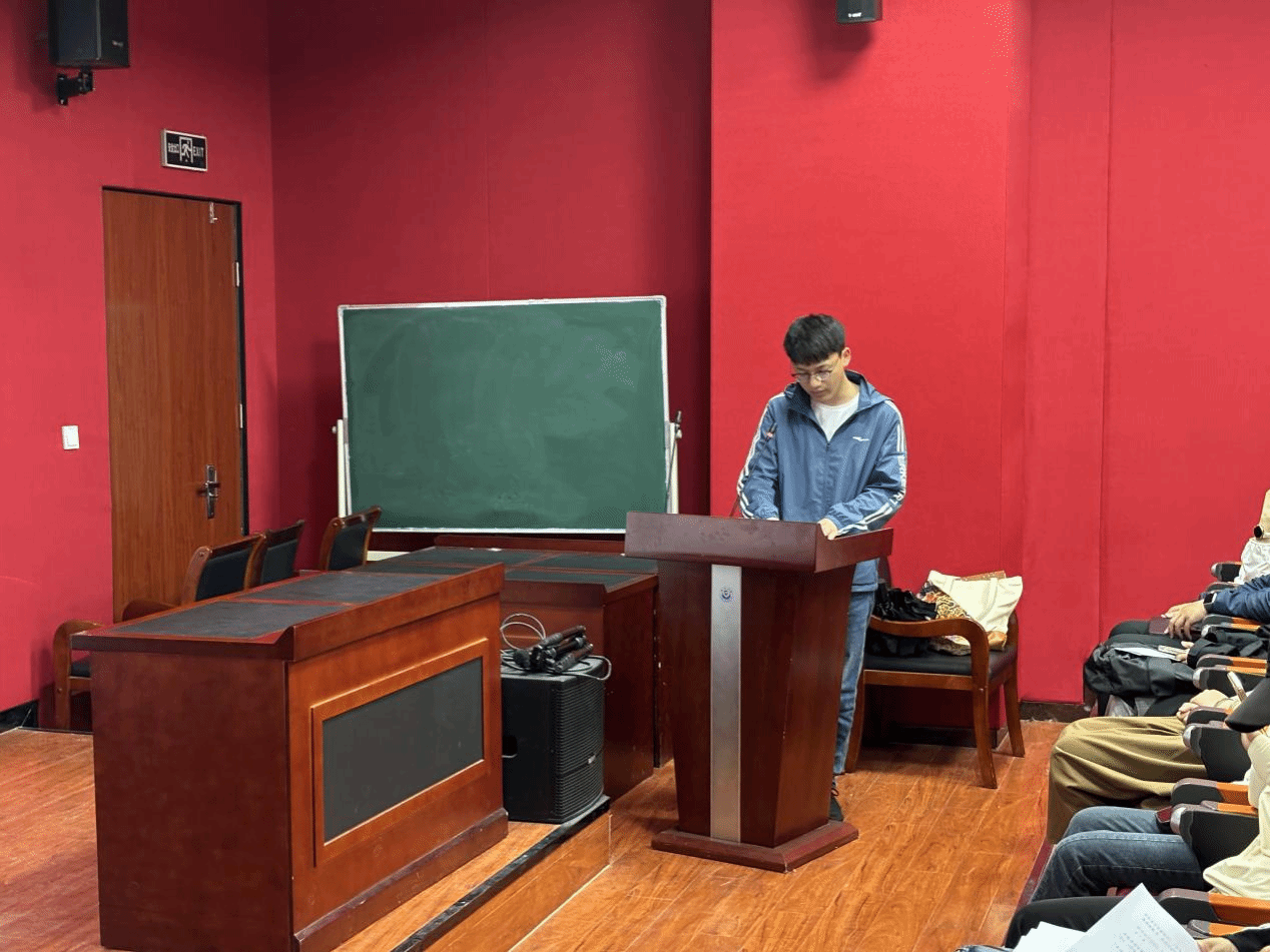 第一位导读人是水浩田同学,他从《中国革命和中国共产党》的写作背景、主要内容、理论价值与现实意义等几方面展开系统阐述,并将本文与《新民主主义论》进行了对比研究。首先,他从三个方面讲解了《中国革命与中国共产党》的写作背景,分别是抗日战争进入战略相持阶段,国共合作面临危机;国统区个人主义,一党专政盛行;中国革命面临理论困惑。其次,着重阐述了这篇文章的主要内容。本文以中国社会性质为立足点分析了中国革命的对象、任务、动力、性质和前途,并指出中国共产党要承担起领导中国民主主义革命和中国社会主义革命彻底完成的责任。紧接着,将《中国革命和中国共产党》与《新民主主义论》两篇文章进行了比较阅读,介绍了了两篇文章之间的关联并指出两篇文章在内容和侧重点方面的不同。最后,介绍了这篇文章的理论价值和现实意义。水浩田同学指出,本文具有指导中国革命走向胜利的行动指南、进一步丰富和发展了马克思主义学说的双重理论价值,以及要尊重农民的主体地位、要以自我革命推动党的建设、要始终坚持坚持实事求是的思想路线的现实启示。