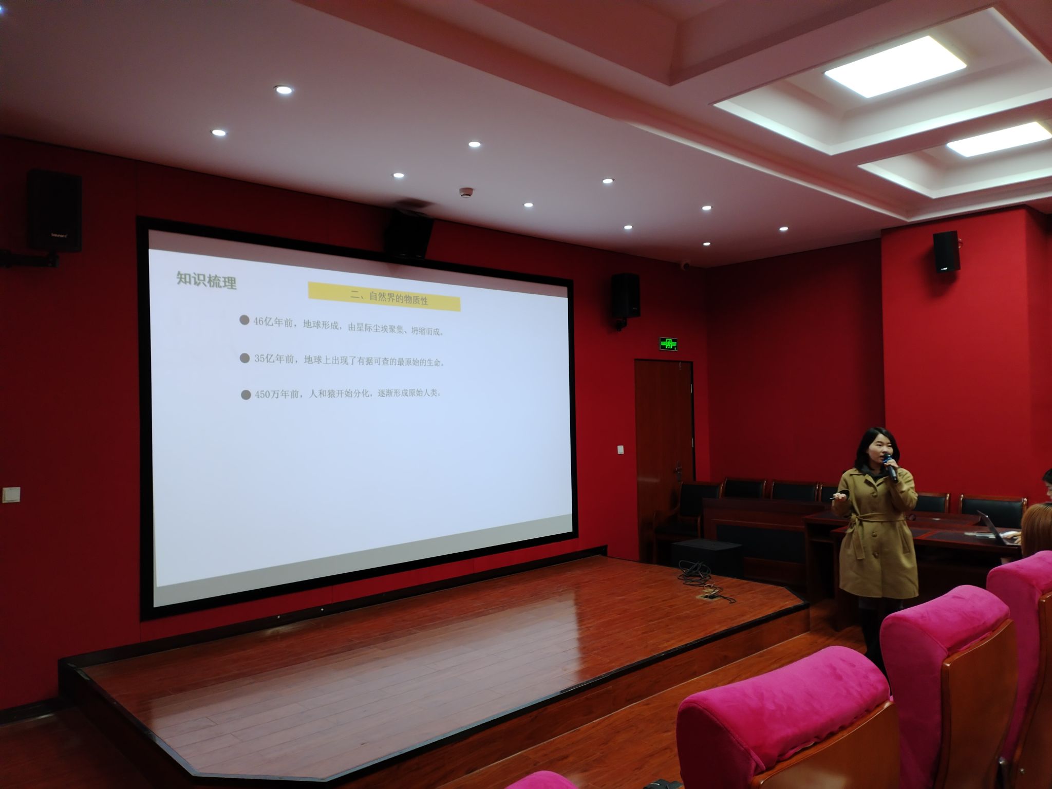 刘欢同学试讲的内容是《世界的物质性》,对物质的含义和唯一特性、自然界的物质性、人类社会的物质性以及意识是物质世界长期发展的产物等内容进行了详细的讲授。通过时政热点的展开导入教学,并在问题设置中,引导小组成员进行讨论,在师生和生生互动中深入知识点的学习。试讲结束后,在同学互评环节,就材料深度挖掘的问题进行了充分讨论。之后谢延秀老师做出了评价,首先对其教学基本功的把握和教学热情的调动给予了肯定,其次进一步提出了以员工为主体,启发式教学的重要性,最后强调要对授课思维进行进一步探究。
