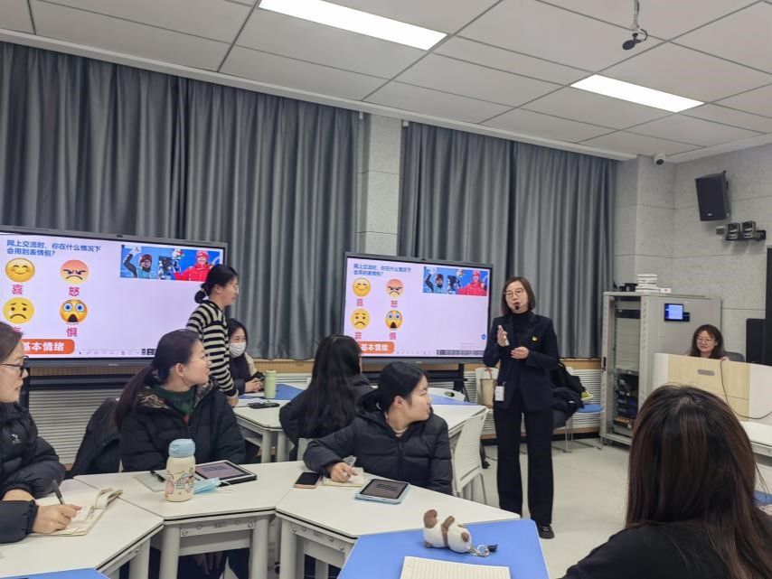 随后,单老师以自己在疫情期间被隔离的亲身经历,在讲解自己的情绪表现的同时吸引员工的注意力,并分析了情绪的成分,包含有生理激活、外显表情、内在体验。同时单老师结合教材案例、课外材料,运用生物学和心理学的知识,让员工分析处在青春期的员工情绪的特点,课堂氛围活跃。
