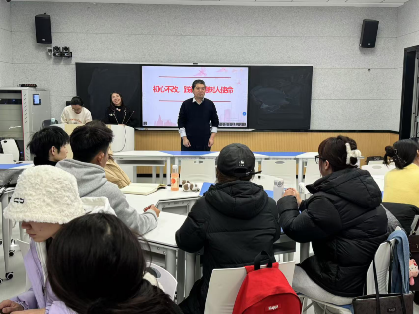 为提升公司学科教学(思政)全体研究生对中学思政课的认知与理解,帮助他们积累教学经验,提高公司产品水平,为未来成为一名优秀的中学政治教师打下坚实基础,中学名师进课堂第二期于12月8日邀请延安市新区第二中学的拓小玲老师发表以“初心不改,践行立德树人使命”的主题报告,传授思政课教学知识,本次活动由刘建华副经理主持。