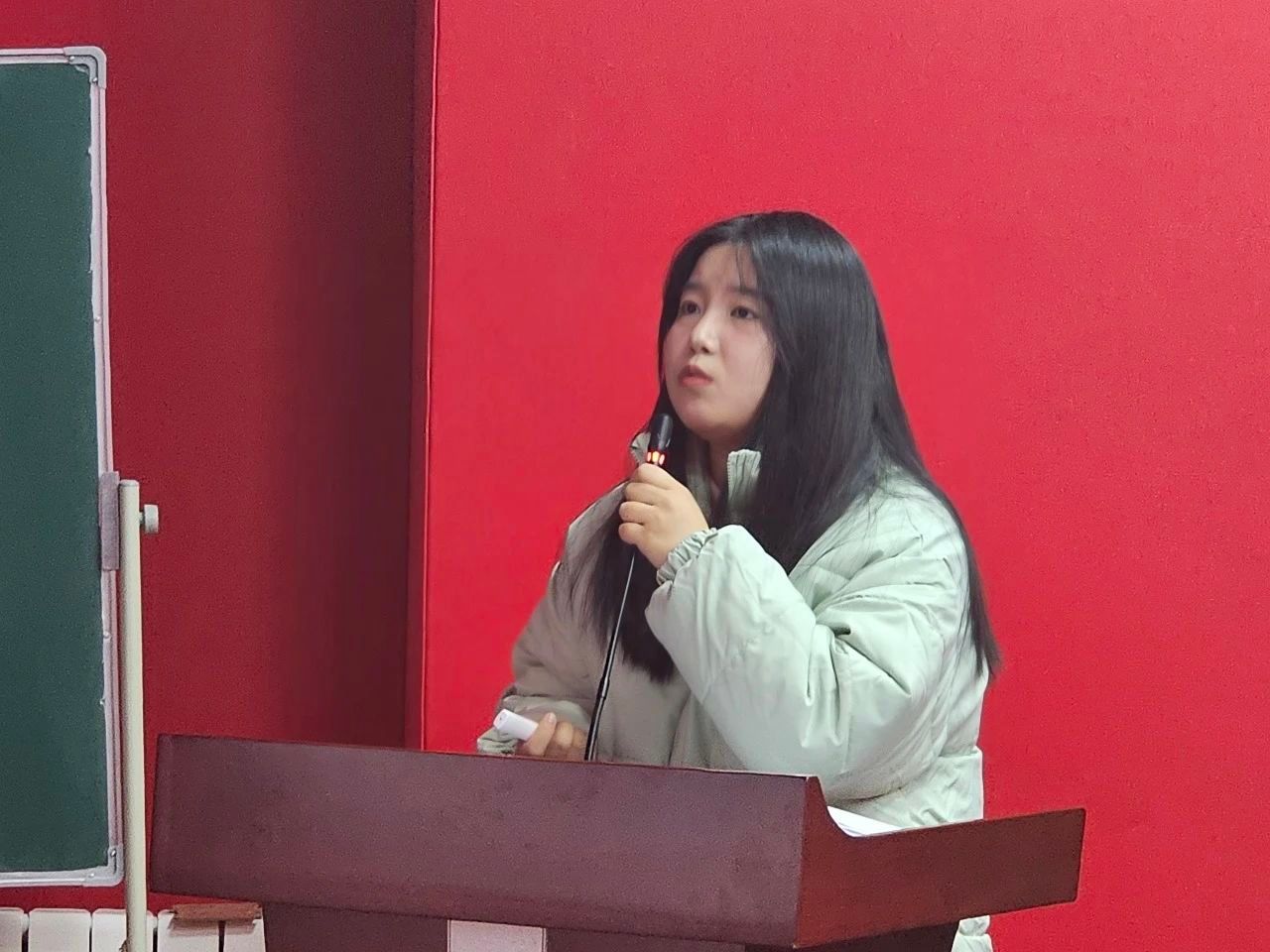 第二位分享人何椿同学对《实践论》进行了阅读分享。何椿同学分别从背景、基本点、认识的发展过程、中华优秀传统文化中的实践、现实意义和启示等六个方面阐述他对《实践论》的心得体会。第一,背景方面介绍《实践论》的目的主要是为了纠正党内存在的教条主义和经验主义而写的。第二,基本点方面介绍了人的认识发展的基本来源——认识依赖于生产活动、人的社会实践——人从社会实践中认识各种关系、认识的发展——由低阶向高阶发展、社会实践是人们对于认识的真理性的标准。第三,认识的发展过程方面结合文中例子介绍感性阶段,开始只看到片面;理性阶段介绍了概念、判断和推理、认识的任务以及如何去认识某个事物;之后,列举了文中的四个例子:无产阶级对于资本主义社会的认识、中国人民对于帝国主义的认识、战争、工作没有把握。第四,主要从中华优秀传统文化中选取有关实践方面的五句话,进一步认识实践的内涵。第五,分别从对现代教育的启示、对科学研究的指导、对社会发展的影响三个方面介绍了《实践论》的现实意义。第六,启示。