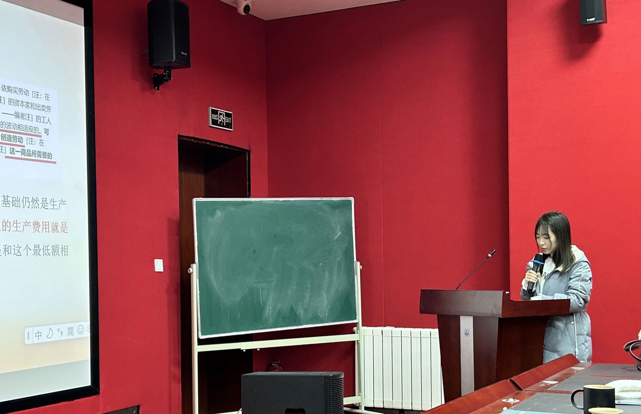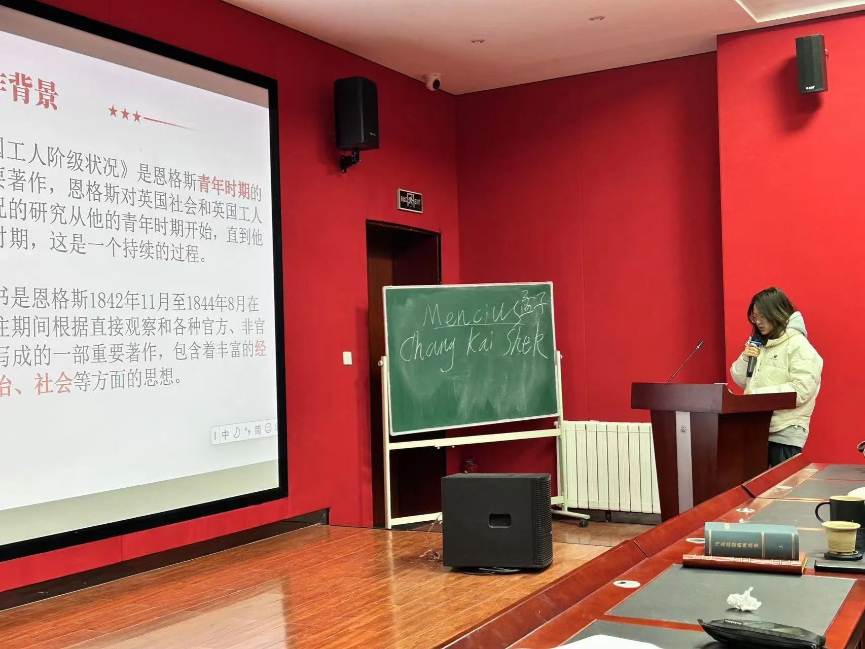 第三位分享人张馨月,她对《英国工人阶级状况》的四个方面进行了分享,分别是写作背景、内容概述、文献解读和当代启示,通过对原著的认真研读,指出了英国工人阶级悲惨的生活状况以及造成这种现象的原因,重点概括了《状况》一文中蕴含的政治、经济、社会思想,并从研究内容、研究方法、现实意义和当代启示向大家展示了当前国内外学者的研究情况,最后从当代社会实际出发,从经济、政治和社会三个方面阐述了当代的启示。