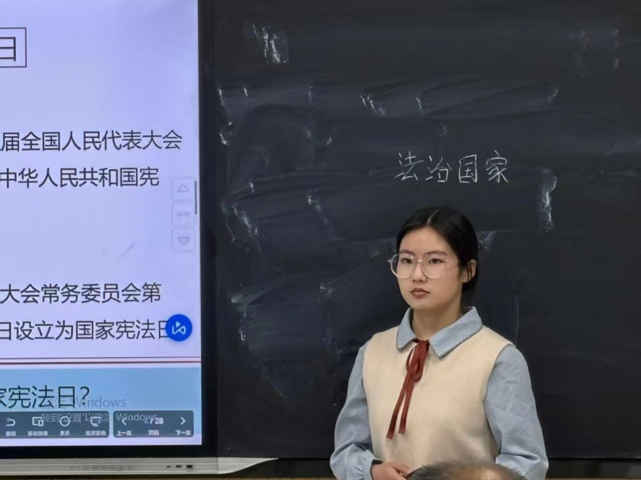 张甜同学在必修三《政治与法治》第三单元第八课第一框《法治国家》的授课中,以系统性的教学展现了扎实的专业素养。