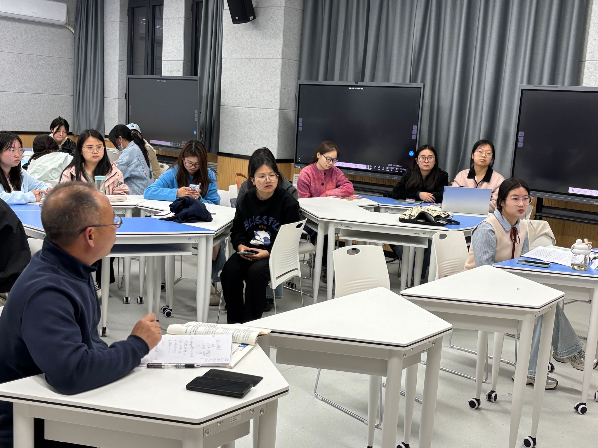 2025年4月21日,学科思政24全体同学于202智慧教室开展了教学技能实训的第十六期活动。本次实训活动讲课人为李柳瑾和张甜两位同学。讲课的内容分别是高中政治必修三第一单元第二课《中国共产党领导人民站起来、富起来、强起来》和高中政治必修三第三单元第八课第一框《法治国家》。