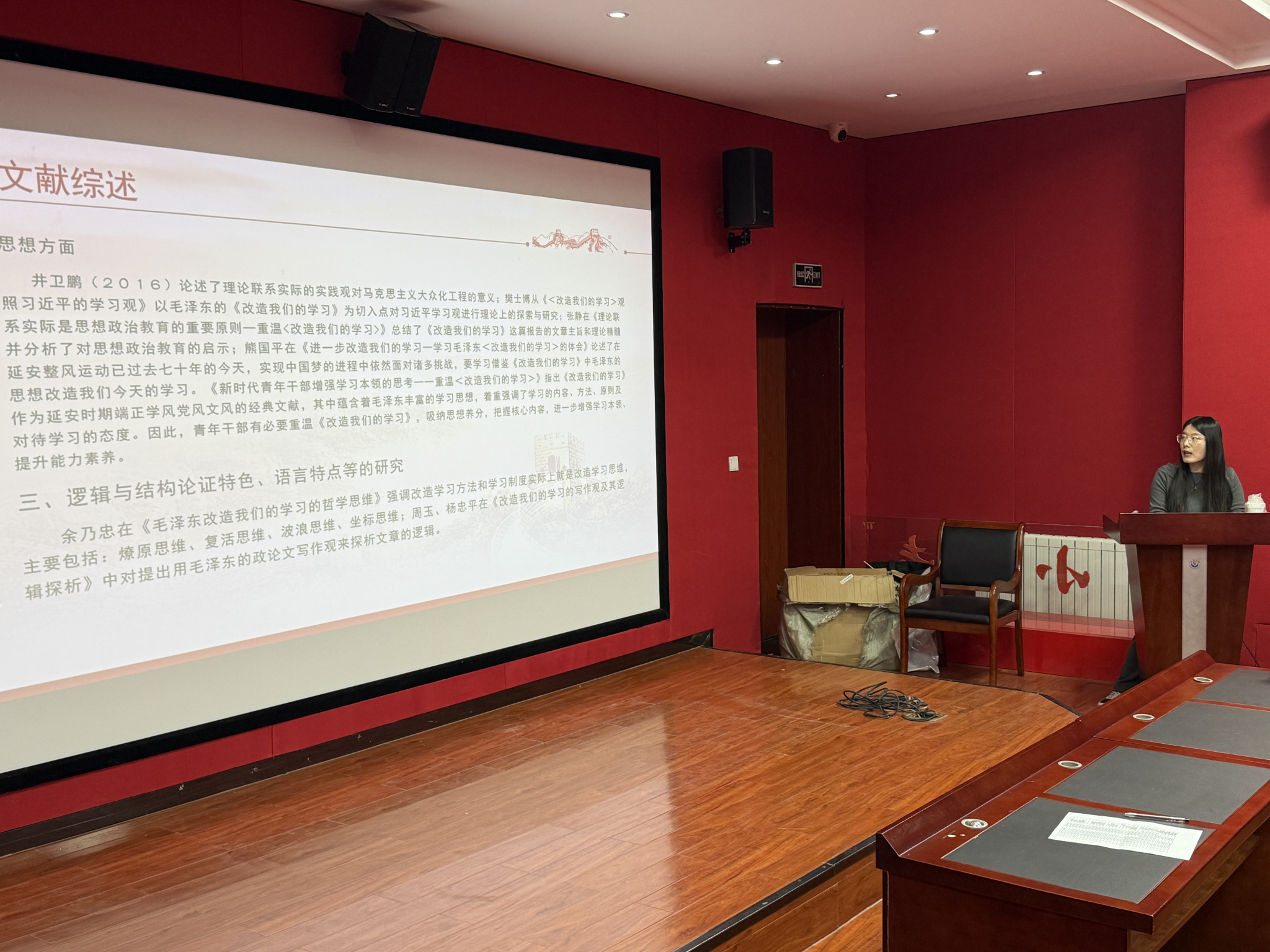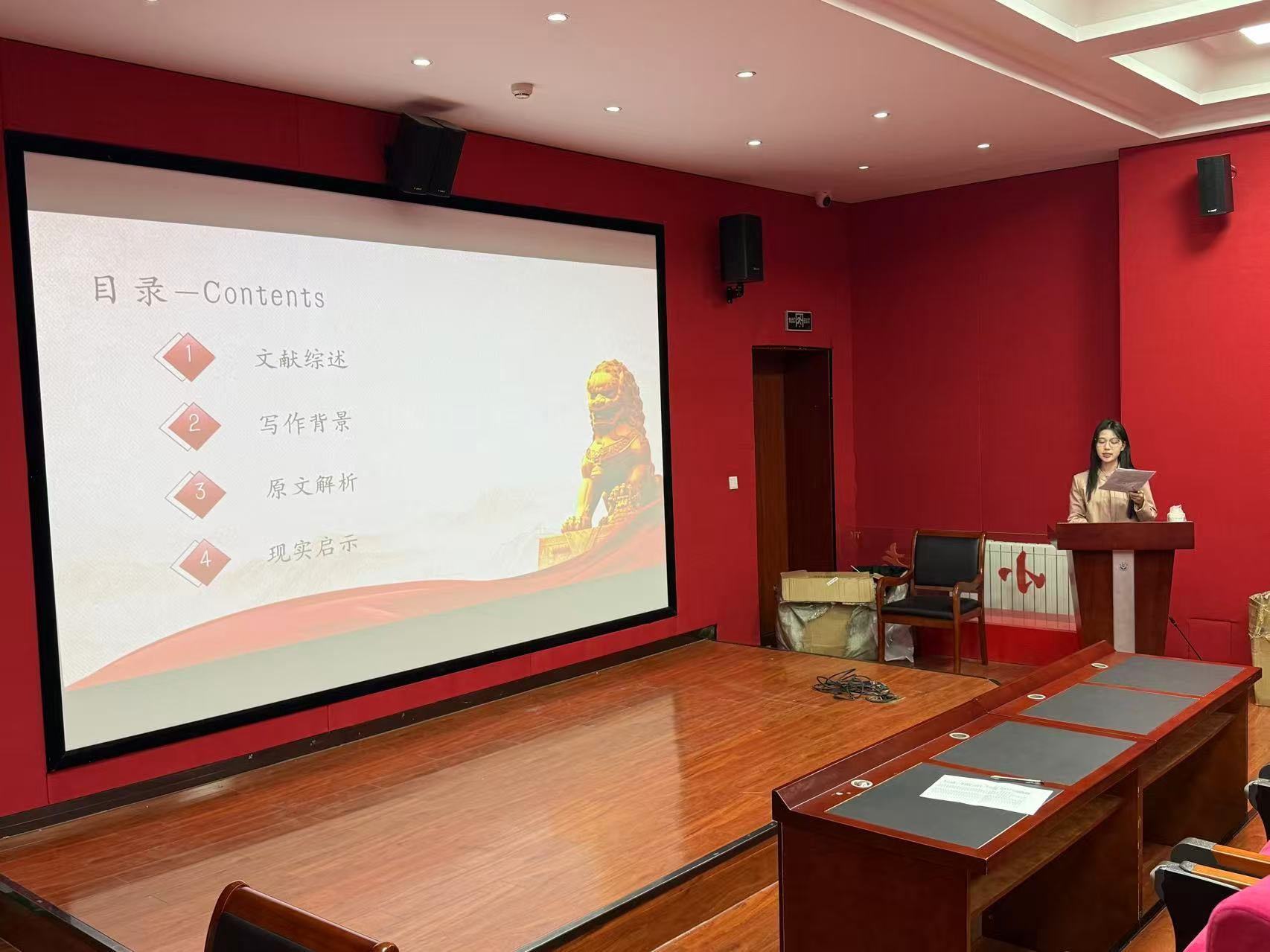 2025年4月28日,“马克思主义经典文献研读” 系列第五十九期学术活动在best365体育亚洲一楼报告厅举行。此次读书会聚焦于毛泽东选集,围绕《改造我们的学习》《反对自由主义》两部经典文献展开深入研讨。2024级思想政治教育方向的硕士研究生李佳、徐春雨两位同学依次登台,就各自研读经典文献的心得与见解作了详细报告分享。