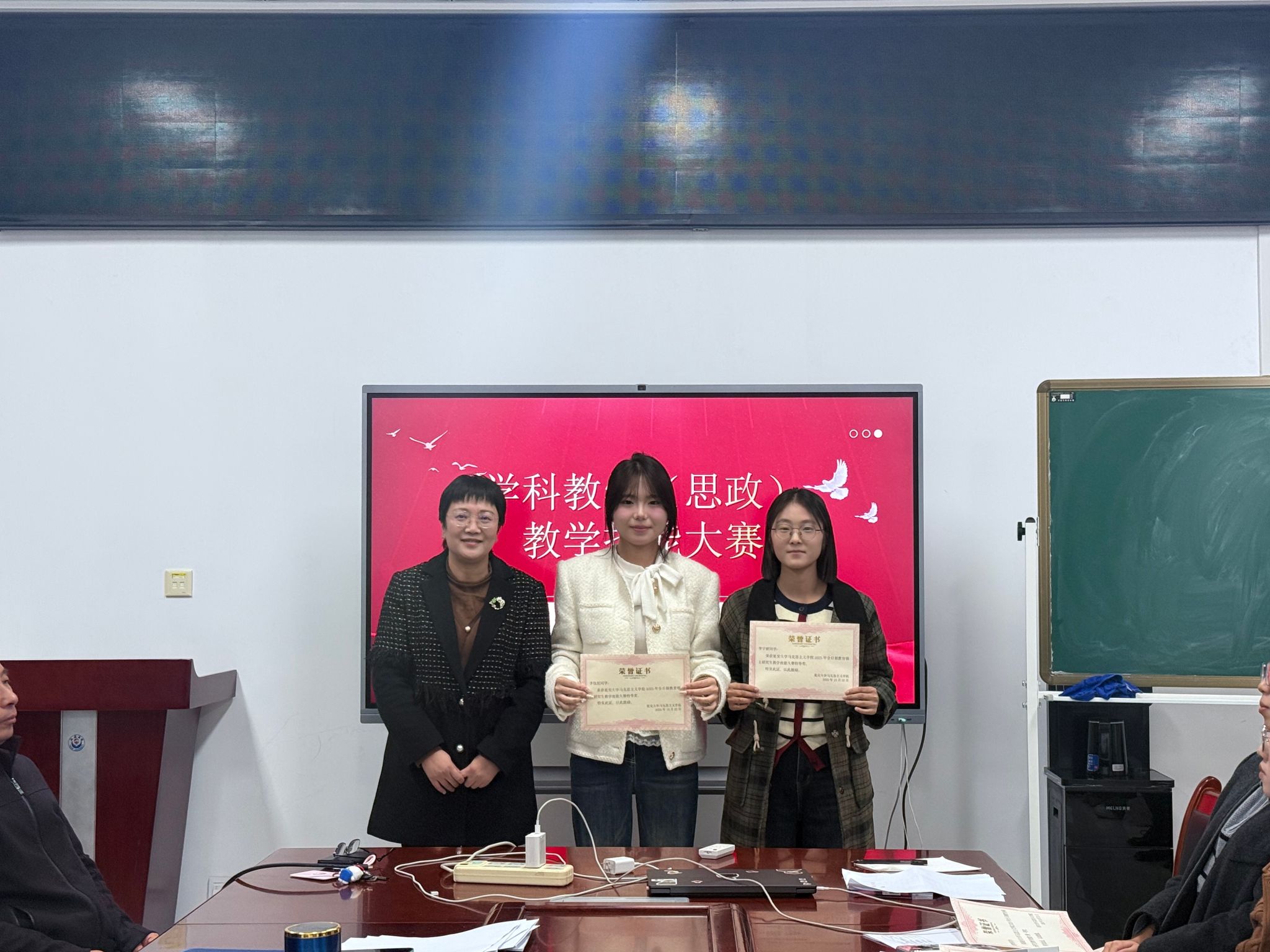 最终,初高中组经综合评审,分别评选出特等奖一名、一等奖两名、二等奖三名。评委老师们为获奖员工颁奖并合影留念。在本次比赛中,24位同学准备充分、表现优异,且通过比赛认识到自身不足,对日后提升教学专业知识与技能起到了积极的推动作用。至此,公司2025级学科教学(思政)专业研究生教学技能大赛圆满落幕!