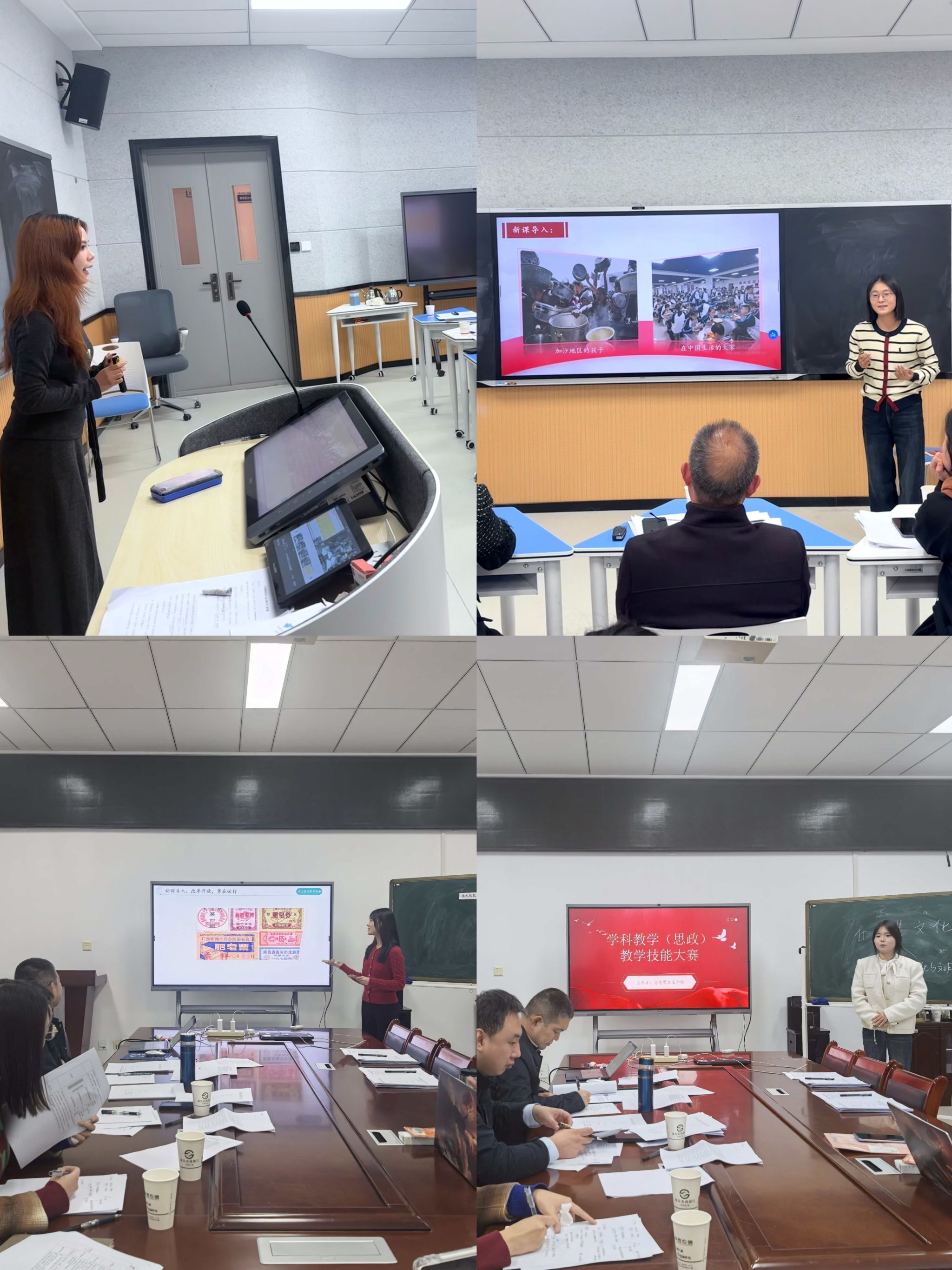 本次大赛以初高中政治教材为依托,聚焦“社会主义市场经济体制”“改革开放”等核心知识点展开教学实践。参赛研究生精心设计教学环节,创新运用案例教学、小组讨论等多元教学方法,将理论知识与社会现实深度结合,以课本中“钢材分配”案例为切入点,清晰拆解资源配置的两种手段。同时也通过展示计划经济时期粮票等实物,带领员工沉浸式感受时代变迁,让课堂既兼具思政课的思想性与知识性,又充满互动趣味,充分彰显了学科思政专业学子的教学潜力与育人思考。